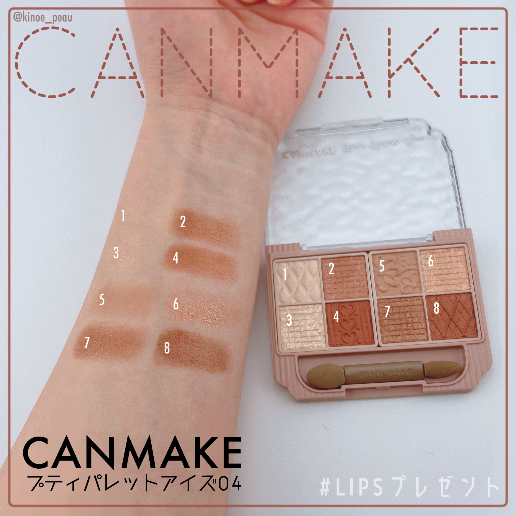 - 持ち歩ける多色パレットがキャンメイクから登場! 捨て色なしの8色入り&チップ付! 「持ち歩けること」や「外出先でもメイク直しができること」を重視した多色パレット。 持ち運びやすいサイズ感なのに、贅沢に8色入りです。 さらに便利なダブルエンドチップまで! マット×パール×ラメなど、組み合わせ方はあなたの自由! 自分好みのアイメイクを楽しめます。