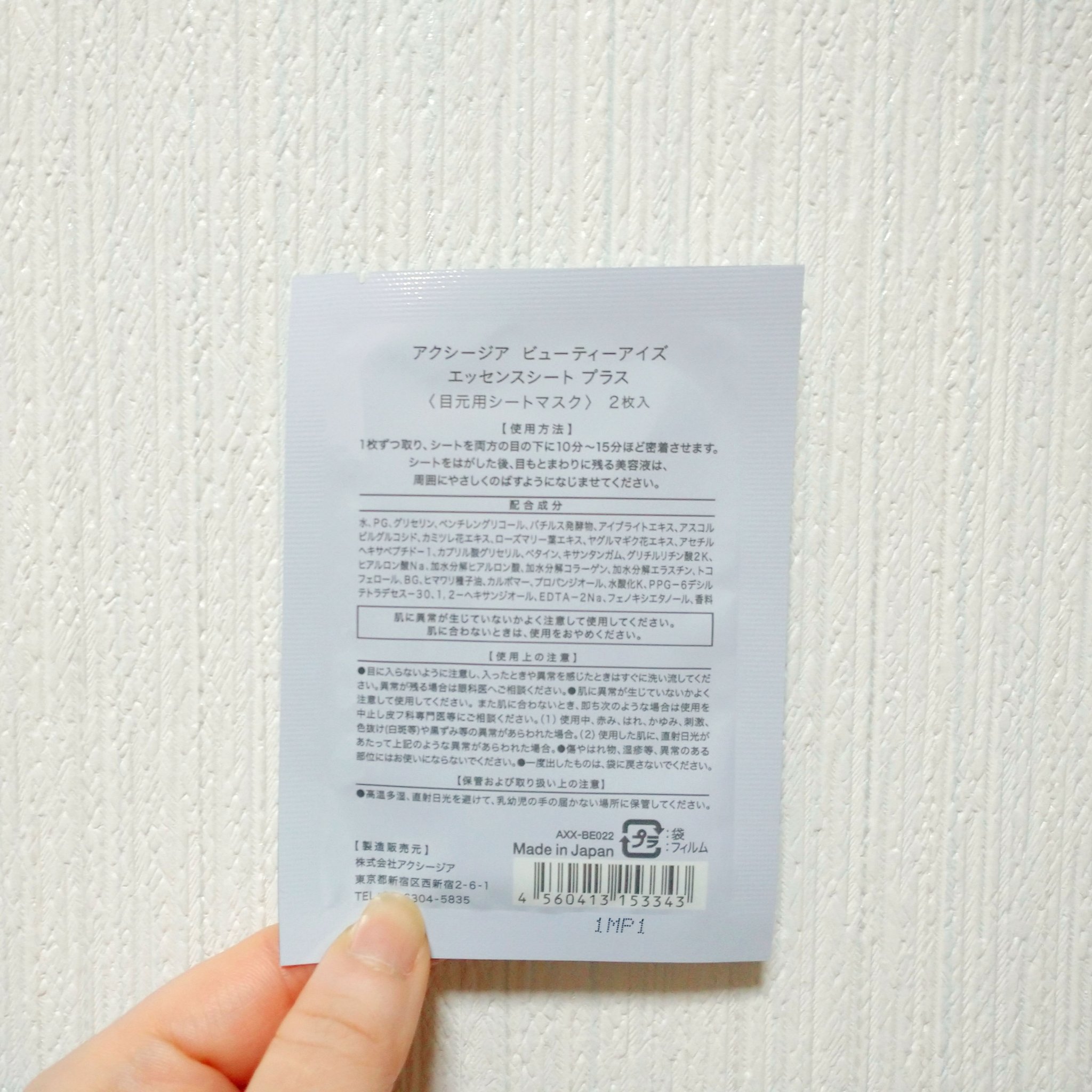 商品詳細情報AXXZIA ビューティーアイズエッセンスシート
