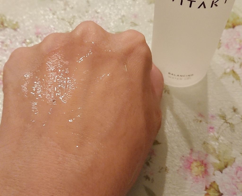 水分多めのオールインワンジェルです。まず見た目は半透明のプラスチックボトルに入っており、軽いです。テクスチャーはジェル状。ひんやりとしていて気持ちよく使えます。香りはさわやかなシトラス系。香りにも癒されます。使った時の感触は水分多めのジェル状...