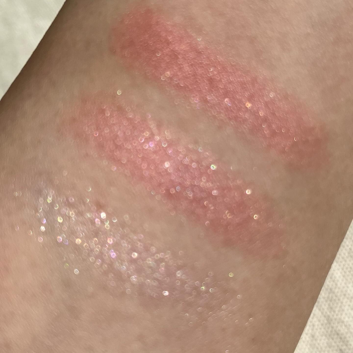 Dior ルージュトラファルガーと LUNASOL スカーレットパッションの比較!! スウォッチだと本当に似てる。まじで笑っちゃうくらい似てる(笑) Diorの方が全体的にラメが入っていて ギラッとした質感なので、派手さがあるかも。 LUNASOLは細かいパールで ほんのりツヤっとして見えて、滑らかな感じ。 Diorの方がバーン!と色が出やすくて LUNASOLは重ねて色を出していく感じ。 Diorのが青み強めで可愛いイメージになりやすくて LUNASOLはニュートラル寄りで大人っぽい。 Diorはオフの日、しっかりメイクで盛りたい日用 LUNASOLは仕事の日でも、きちんとしたい日でも使えるな 色は似てるんだけど、仕上がりの雰囲気や イメージが変わってくるから どっちもあって良かったなと思ってます(笑)