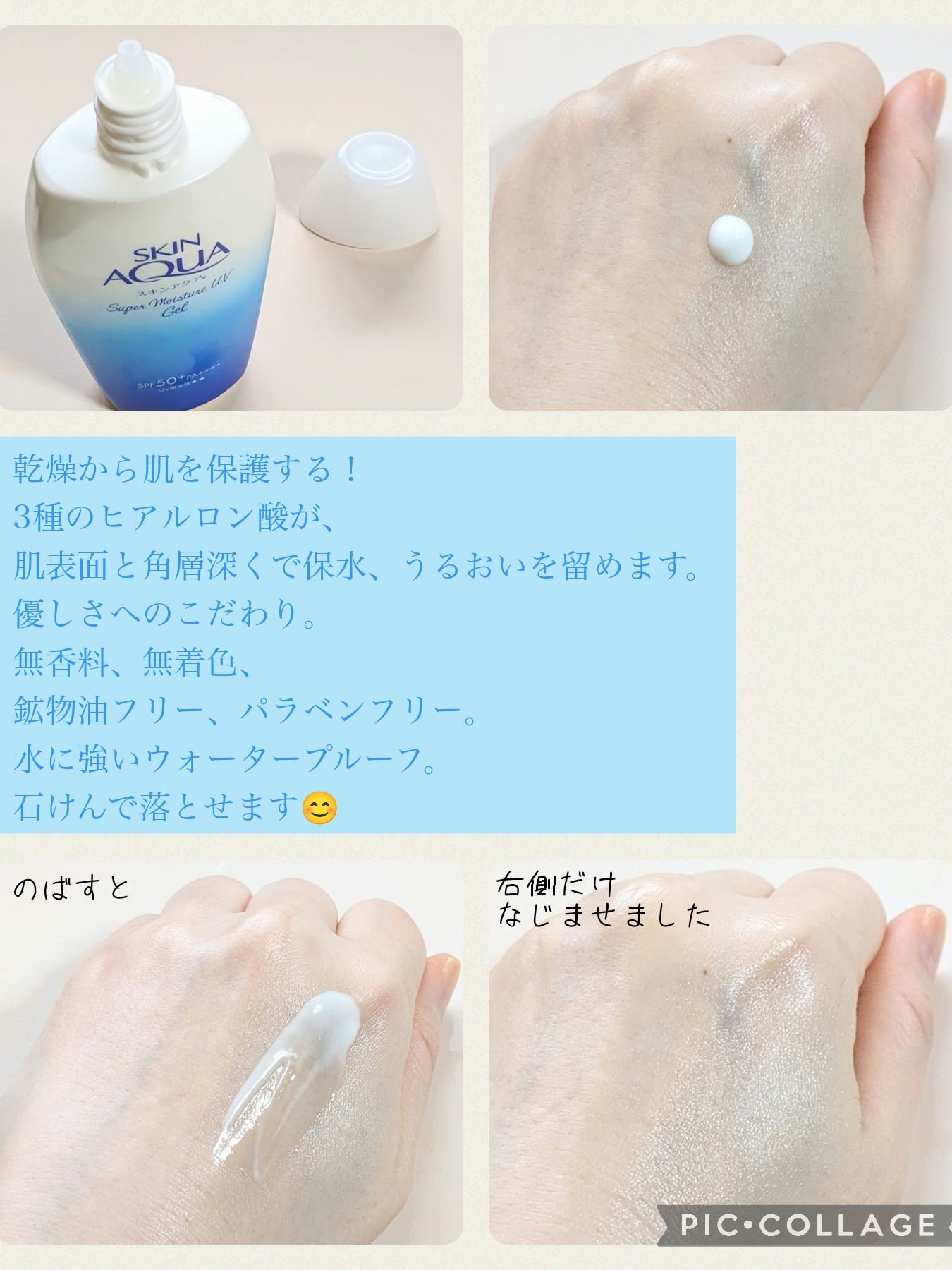 「スキンアクアスーパーモイスチャージェル」✔️3種のヒアルロン酸(うるおい成分)配合 ✔️スーパーウォータープルーフ✔️顔・からだ用、化粧下地にも✔️無香料、無着色、パラベンフリー、鉱物油フリー✔️SPF50+/PA++++/UV耐水性★★...