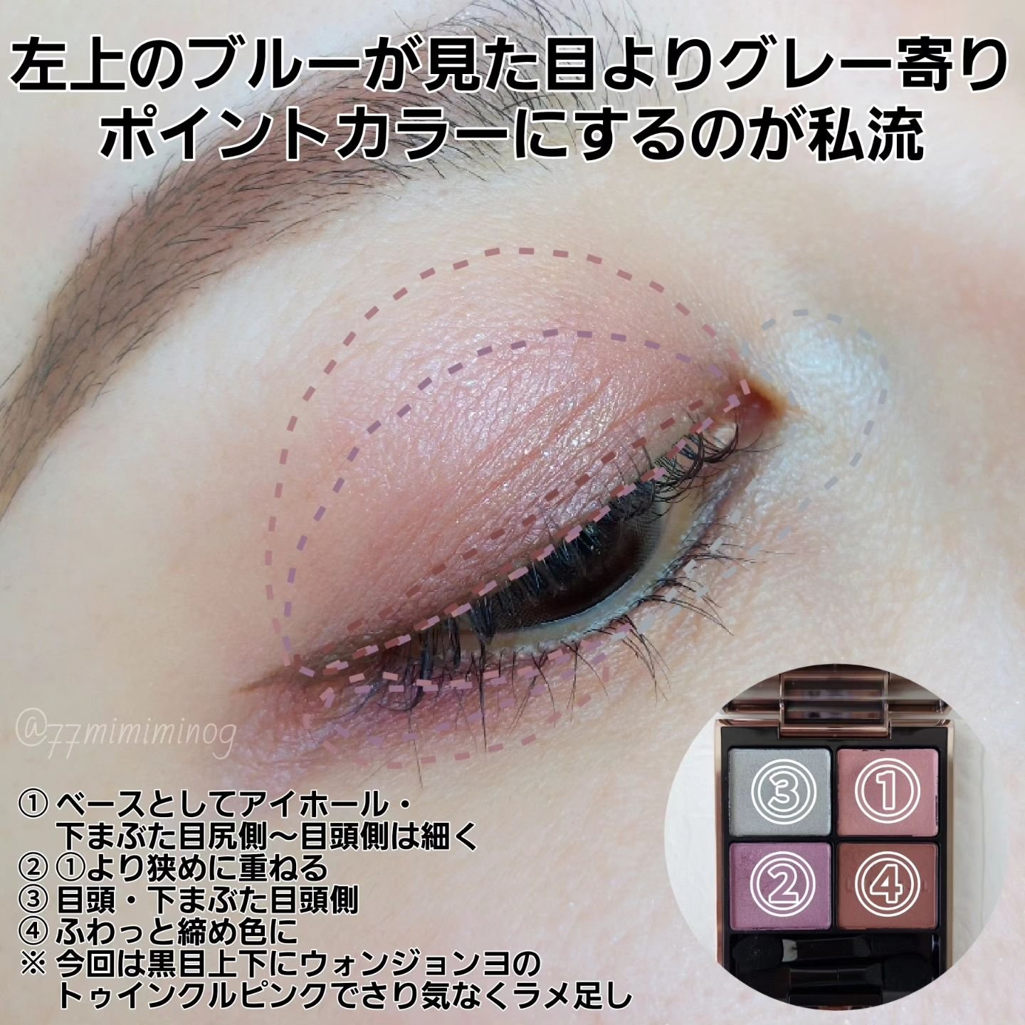 ベースに仕込むことで、パレットのカラーたちを引き立ててくれて発色がきれいに出る…!感動♡ 私の瞼ではピンクみが強めに出るんだけど、そのおかげでコートカラーのラメと締め色が映えて美しい🥹🩷 これ、136のパレットにも仕込んでみたい!!