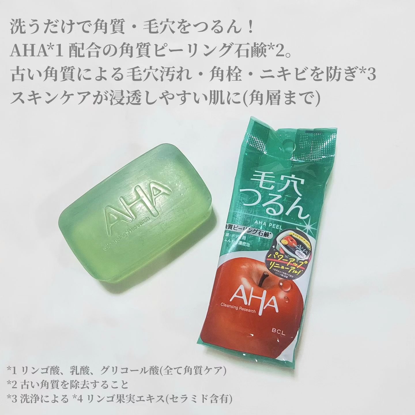 - 洗うだけで角質・毛穴をつるん!AHA*1 配合の角質ピーリング石鹸*2。 顔・ボディ用 ●トリプルAHA*1 配合の濃密泡で毛穴つるんとさっぱり肌に。 古い角質による毛穴汚れ・角栓・ニキビを防ぎ*3、スキンケアが浸透しやすい肌に。(角層まで) 角質ケア成分:トリプルAHA*1、BHA(サリチル酸)、パパイン ●美容保湿成分配合(リンゴセラミド*4、ティーツリー葉油) フレッシュアップルの香り *1 リンゴ酸、乳酸、グリコール酸(全て角質ケア) *2 古い角質を除去すること *3 洗浄による *4 リンゴ果実エキス