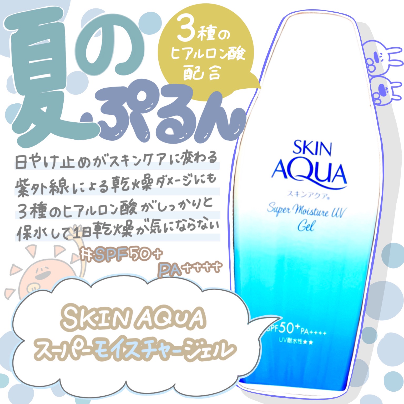 スキンアクアスキンアクアスーパーモイスチャージェルドラッグストアで購入しました!私がリニューアル前から、何年も愛用している商品です!サラッとした使い心地で、とにかくベタつかないので、お気に入りです!顔には少し刺激が強かったので、身体用に使って...