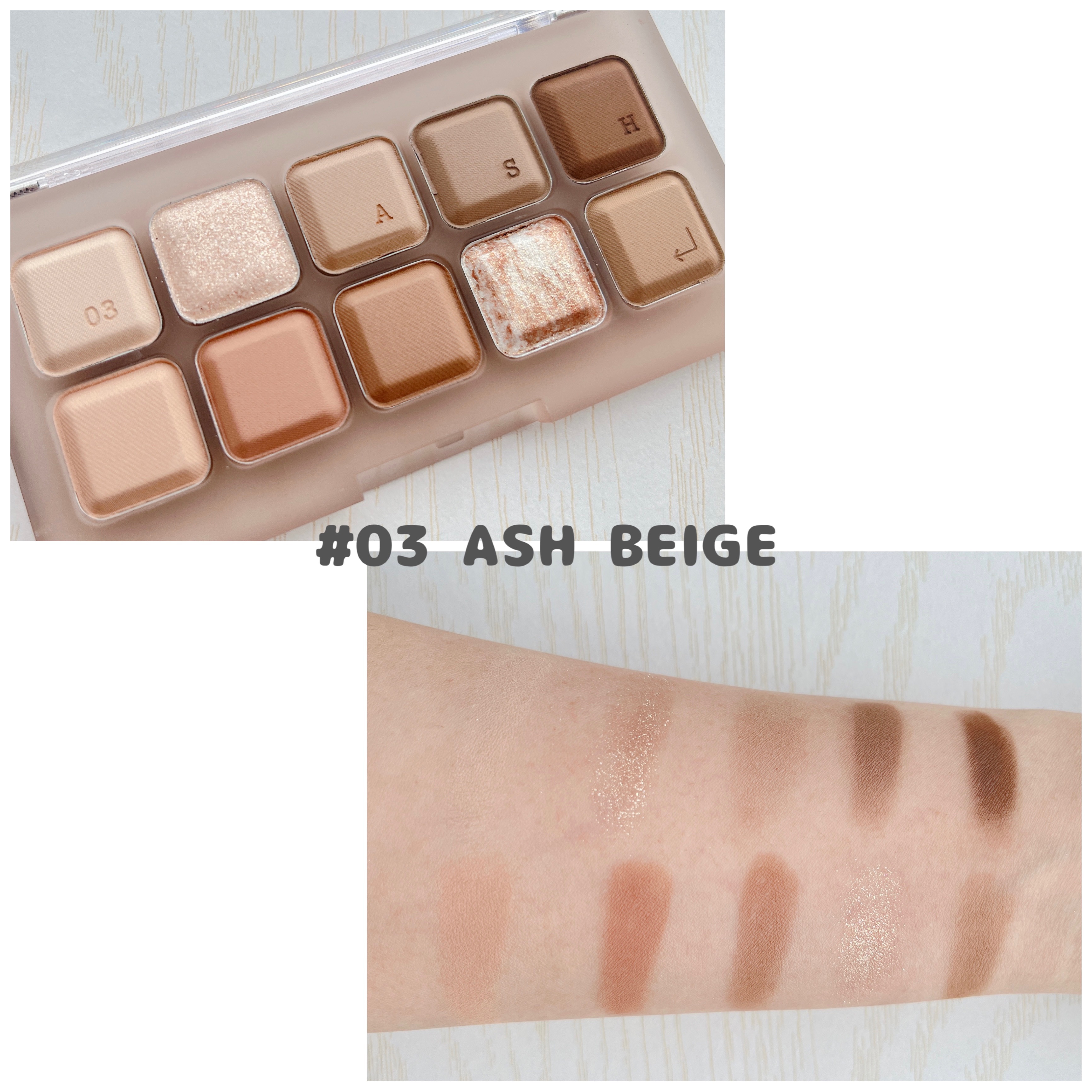 ミルクラテの上に透明に輝くラメのトッピングを加えたデイリークリームベージュパレット。 9色パレットとなっており、以下4つのテクスチャーにわかれています。 マットが6色、グリッターが3色と非常にバランスの良いパレットとなっています。 ベージュ系のパレットだからオフィスメイクにぴったりで、最近仕事に行く時は基本的にこのアイシャドウを使っちゃいます。 この4色だけでナチュラルに盛れるから本当におすすめ🐰💭 ベージュ系だからどんな場所でも使えちゃうので、1つ持っているだけで重宝すること間違いなし🐣 ぜひ1度使ってみて欲しいアイシャドウです。