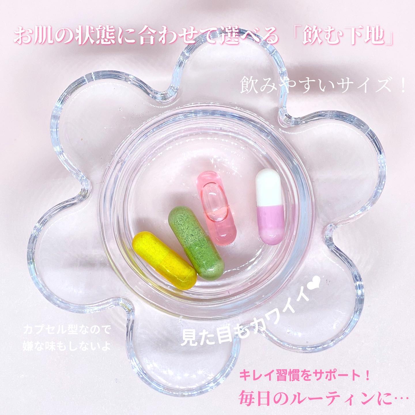 自分の肌悩みに合わせて選べる「飲む下地」☺️💕 約8時間続く、継続型ビタミンC →コラーゲンは、ビタミンC不足だと生成できないので、排出されやすいビタミンCを体に留めることが重要💡 ビタミンCは、多重構造のビタミンCビーズが入っていて、時間をかけてゆっくり溶ける💛 →排出されやすいビタミンCを長時間体内に留められるのがよかった🥺💕