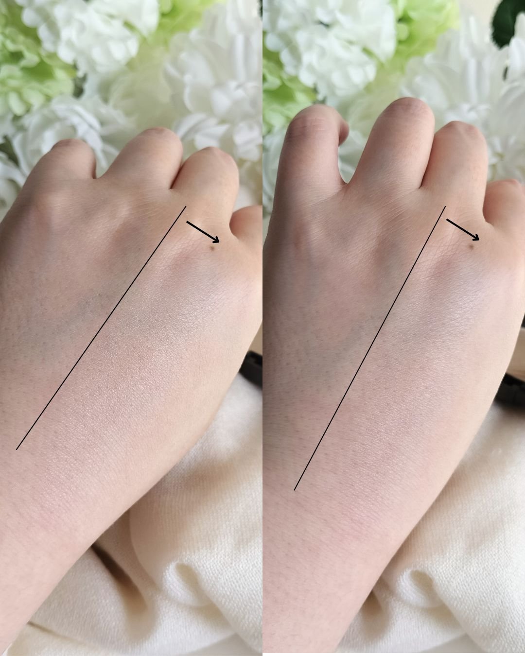 新色はミントとラベンダーがあり、私は頬の赤みが気になるのでミントを選びました。 ミントのほうがよりトーンアップを感じます 新色ミントは、頬の赤みを自然にカバーしてかつ色白さん風にトーンアップもしっかりしてくれます。 赤みの気になる箇所は重ね付けをおすすめします。 使い心地はベージュと変わらず軽いつけ心地で快適です。