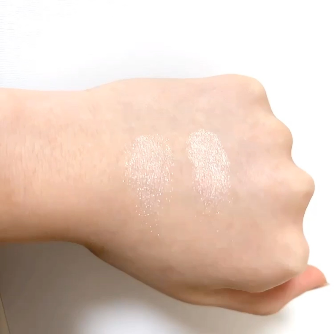 粒が大きめでキラキラ ベースの色はない ブラシがなく、指でとると付きすぎやすい 光沢感がある ブラシが付いているので量の調節がしやすい ベースの色はすこしベージュっぽい キラキラして可愛いハイライトがほしい方はキャンメイク、パールっぽい上品な光沢感が欲しい方はセザンヌって感じかな〜。