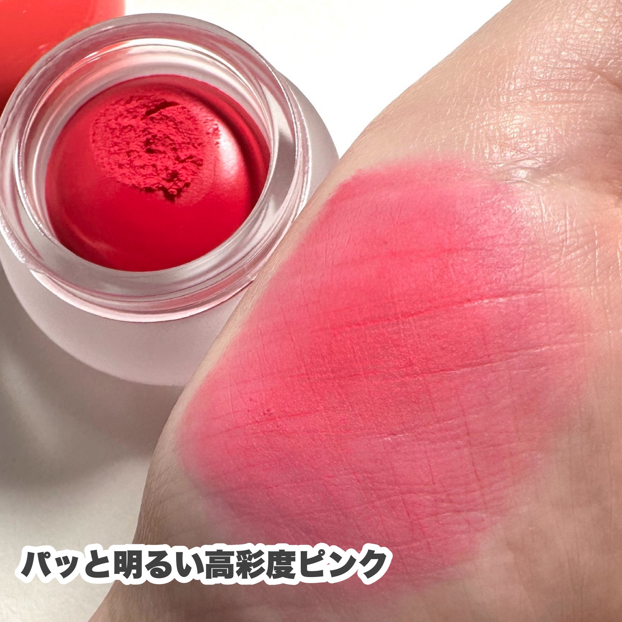 コロンとした丸みのある可愛らしいデザイン。ふんわりとしたムースプリンのようなクリーム質感のリップアンドチーク。肌に馴染ませるとサラッとしているマットな使用感です。 ND01 OH!は、くすみ感のないフレッシュな青みピンクカラー。好みの濃さに、またパウダーチークと重ねることも出来るのでイエベでも可愛らしい青みピンクカラーに挑戦しやすかったです。 値段も手頃で色展開も豊富なので、コーラル系やピーチ系のカラーも集めたくなりました。