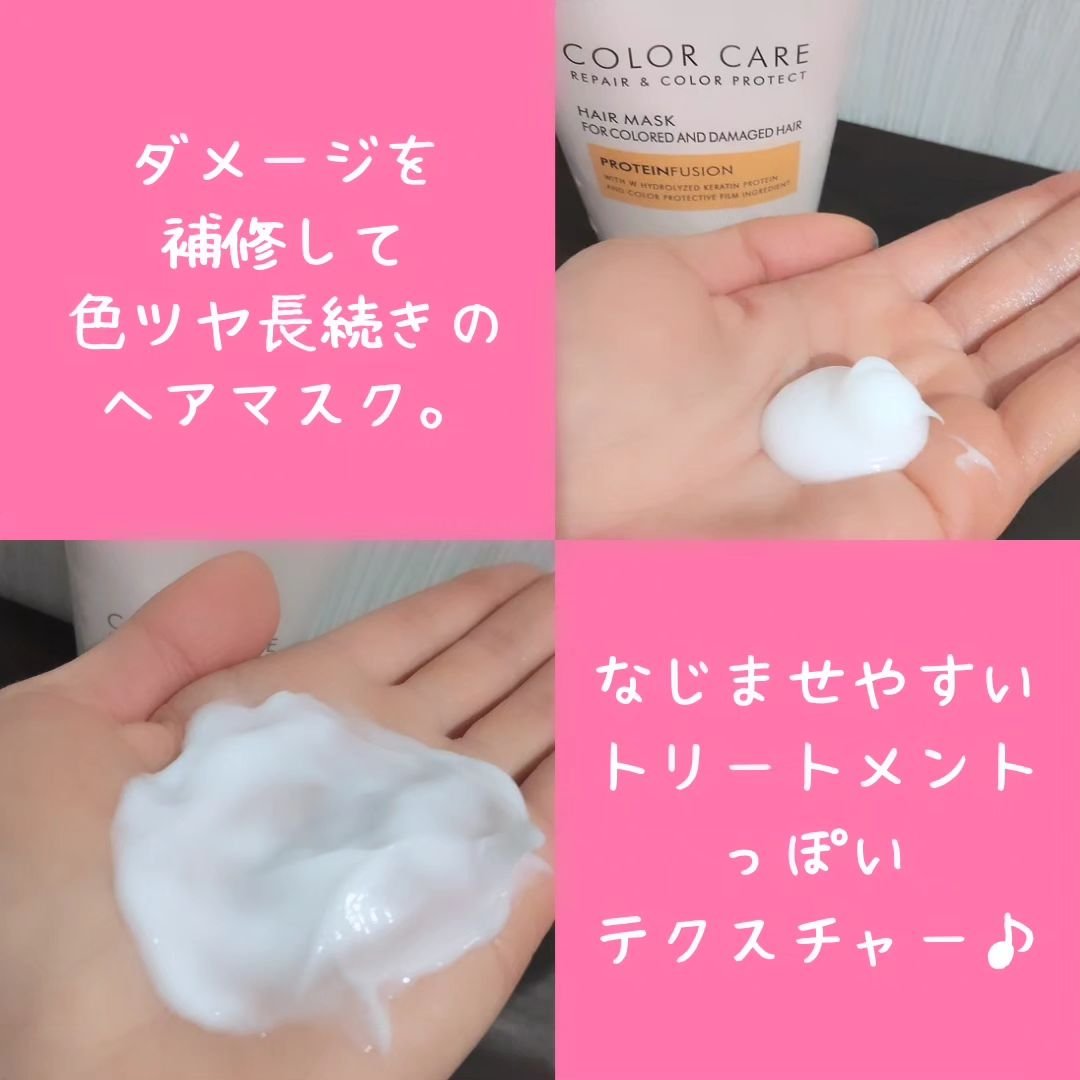 ライン使いすることでカラーヘアの色落ちを防ぎダメージを補修♪ ツヤのある美しい髪へと導いてくれるヘアケアラインです。 シャンプーはきめ細かい泡で、カラーリングで傷んだ髪をやさしく洗い上げます。 トリートメント髪の芯まで浸透しダメージを補修。 ヘアマスクは週に1~2回のスペシャルケアとして! より集中的にダメージを補修し、ツヤと潤いを与えます。