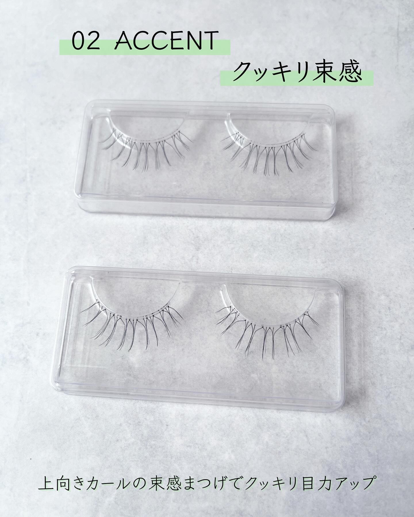 - “ワンタッチ”で理想のまつげが叶うつけまつげです。 最初から束になっているからそのままつけるだけで簡単に”束感まつげ”が完成する01・02、抜け感のあるデザインでサロンで施術した”まつげエクステ”のような仕上がりになる03~06の全6種。 自まつげが少なくても、短くても、生えグセがあっても、誰でもキレイなまつげに。ナチュラルな繊細毛で、自然かつ華やかな目元を演出します。