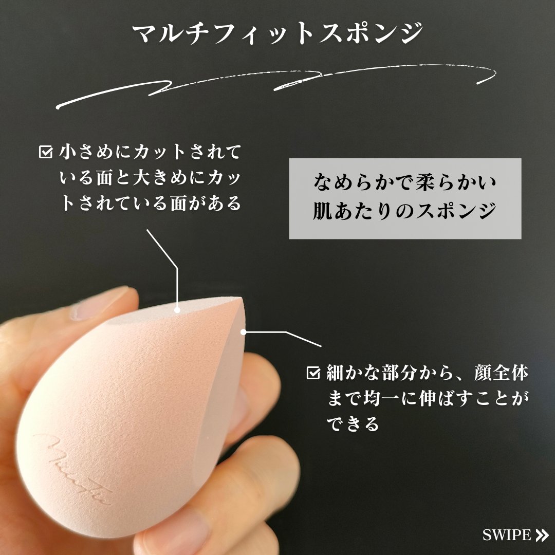 フランス発祥のお菓子 Millefeuille-ミルフィーユ- から着想を得たコスメブランド⚘˖* 水を含ませるとボリュームアップしさらにベースメイクがしっとりフィット✨ 使いやすいメイクスポンジです.ᐟ.ᐟ
