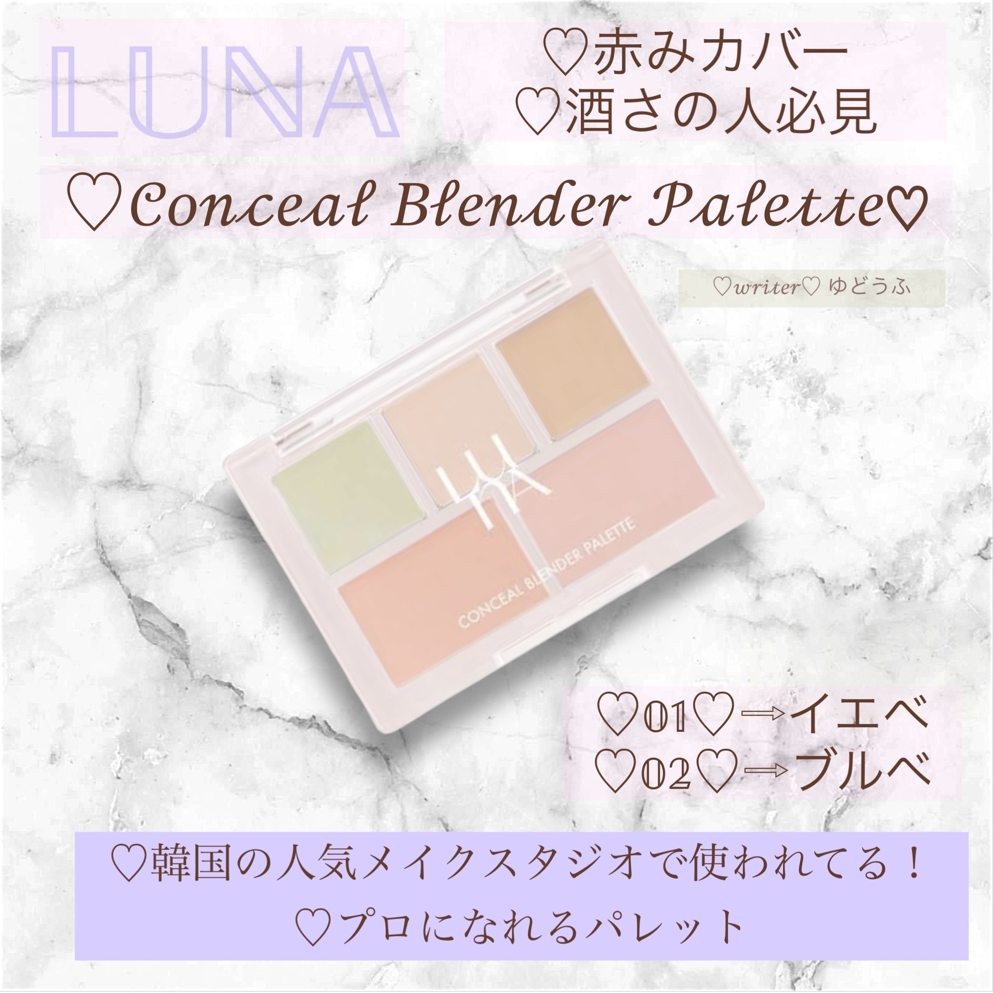 LUNAコンシールブレンダーパレット♡どんな悩みでもカバーしてくれるコンシーラーパレット🎨♡01.クリアカバー色ムラ・赤みをカバーイエベ・ニュートラルの方向け♡02.ピュアカバー色ムラ・黄ぐすみをカバーブルベ向けいろんな肌悩みがこれ1つでカバ...