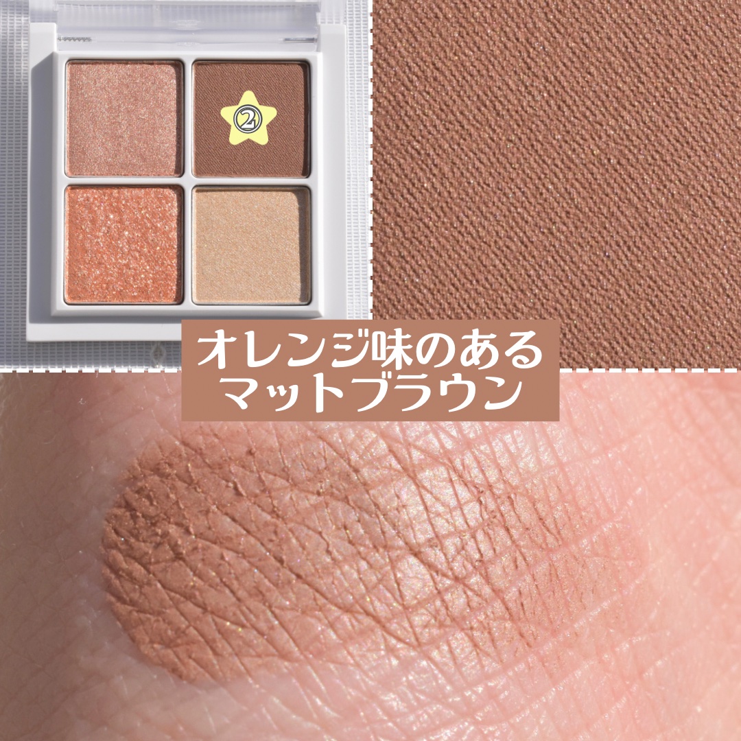 Point1:ナッツを細かく砕いたような柔らかくヴィンテージなムードのカラーバリエーション マット・シマー・グリッターなど繊細で多彩なテクスチャーで構成され誰でも手軽に活用できる マットはふわっとした粉質でグリッターやシマーはしっとりとした粉質! イエベな私にぴったりなカラーでどのカラーも浮くことなく使えそう🤭 デイジークのアイシャドウは初めてでしたが、ふわっとした粉質で発色も良いので他のカラーや新色が出たらまたチェックしたいなと思いました😊