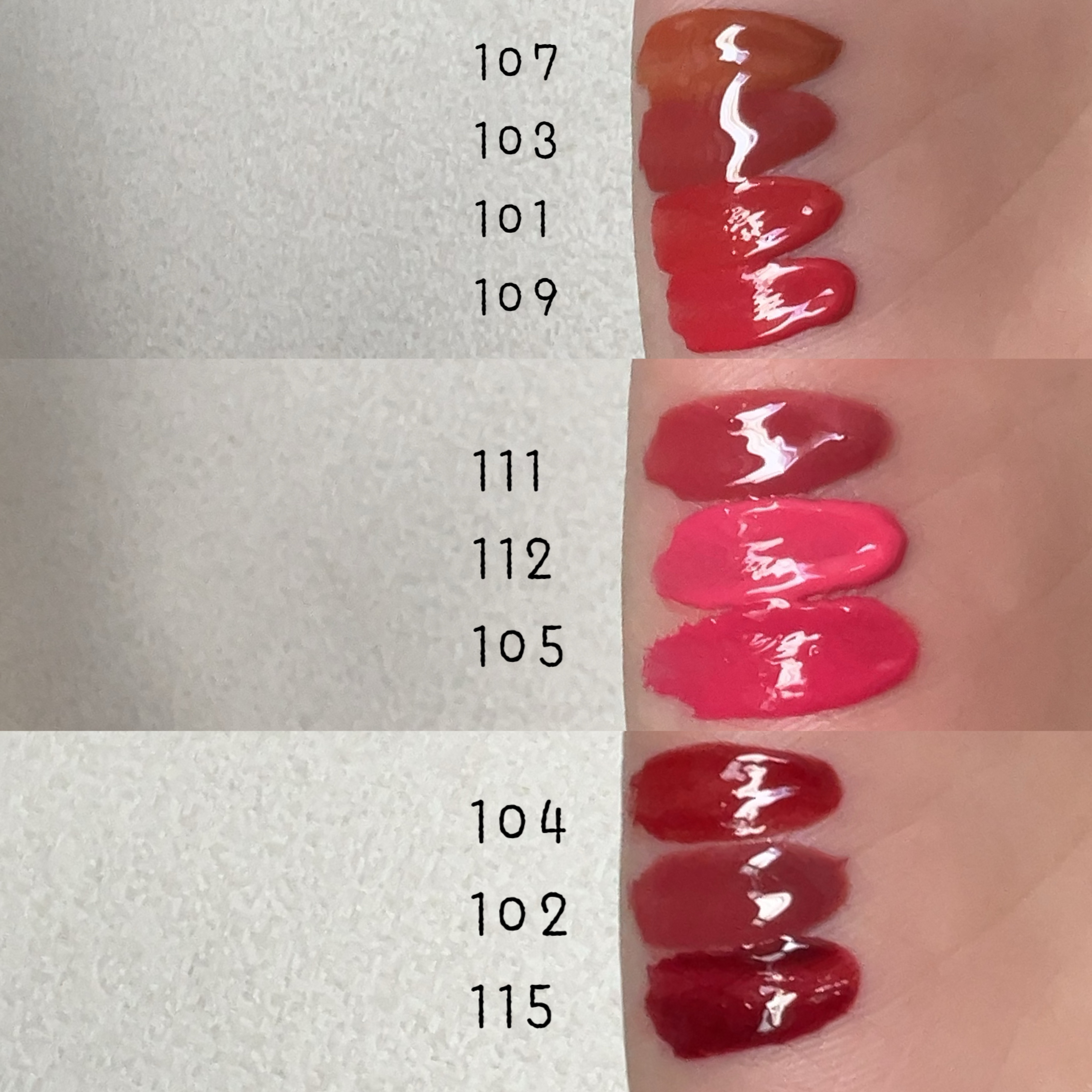 - <101 ジョイフル> 水、リンゴ酸ジイソステアリル、ダイマージリノール酸(フィトステリル/イソステアリル/セチル/ステアリル/ベヘニル)、ジイソステアリン酸ダイマージリノレイル、ノナイソステアリン酸ポリグリセリル-10、オクチルドデカノール、ビスジグリセリルポリアシルアジペート-2、水添ポリイソブテン、セチルPEG/PPG-10/1ジメチコン、ポリソルベート60(小麦由来)、イソステアリン酸ソルビタン(小麦由来)、1,2-ヘキサンジオール、グリセリン、ベヘニルアルコール、(アクリル酸/MA)コポリマーNa、ペンチレングリコール、BG、ポリアクリレート-13、トロメタミン、(アクリレーツ/アクリル酸アルキ ル(C10-30 )クロスポリマー、エチルヘキシルグリセリン、ポリイソブテン、(アクリル酸ヒドロキシエチル/アクリロイルジメチルタウリンNa)コポリマー、スクワラン、デヒドロ酢酸、ステビオシド、香料、フィチン酸、カプリリルグリコール、ジメチコン、水添ロジン酸メチル、水酸化Al、ポリソルベート20(小麦由来)、トコフェロール、ライム果汁、キイチゴ果汁、レモン果汁、マンゴー果汁、フラガリアチロエンシス果汁、アンズ果汁、オレンジ果汁、グレープフルーツ液汁、キウイ果汁、パパイア果汁、[+/-]酸化チタン、黄4、黄5、赤 104(1)、赤227、青1 <102 デューイ> 水、リンゴ酸ジイソステアリル、ダイマージリノール酸(フィトステリル/イソステアリル/セチル/ステアリル/ベヘニル)、ジイソステアリン酸ダイマージリノレイル、ノナイソステアリン酸ポリグリセリル-10、オクチルドデカノール、ビスジグリセリルポリアシルアジペート-2、水添ポリイソブテン、セチルPEG/PPG-10/1ジメチコン、ポリソルベート60(小麦由来)、イソステアリン酸ソルビタン(小麦由来)、1,2-ヘキサンジオール、グリセリン、ベヘニルアルコール、(アクリル酸/MA)コポリマーNa、ペンチレングリコール、BG、ポリアクリレート-13、トロメタミン、(アクリレーツ/アクリル酸アルキル(C10-30))クロスポリマー、エチルヘキシルグリセリン、ポリイソブテン、(アクリル酸ヒドロキシエチル/アクリロイルジメチルタウリンNa)コポリマー、スクワラン、デヒドロ酢酸、ステビオシド、香料、フィチン酸、ジメチコン、水添ロジン酸メチル、水酸化Al、カプリリルグリコール、ポリソルベート20(小麦由来)、トコフェロール、ライム果汁、キイチゴ果汁、レモン果汁、マンゴー果汁、フラガリアチロエンシス果汁、アンズ果汁、オレンジ果汁、グレープフルーツ液汁、キウイ果汁、パパイア果汁、酸化チタン、赤227、黄5、黄4、青1 <103 ハミング> 水、リンゴ酸ジイソステアリル、ダイマージリノール酸(フィトステリル/イソステアリル/セチル/ステアリル/ベヘニル)、ジイソステアリン酸ダイマージリノレイル、ノナイソステアリン酸ポリグリセリル-10、オクチルドデカノール、ビスジグリセリルポリアシルアジペート-2、水添ポリイソブテン、セチルPEG/PPG-10/1ジメチコン、ポリソルベート60(小麦由来)、イソステアリン酸ソルビタン(小麦由来)、1,2-ヘキサンジオール、グリセリン、ベヘニルアルコール、(アクリル酸/MA)コポリマーNa、ペンチレングリコール、BG、ポリアクリレート-13、トロメタミン、(アクリレーツ/アクリル酸アルキル(C10-30))クロスポリマー、エチルヘキシルグリセリン、ポリイソブテン、(アクリル酸ヒドロキシエチル/アクリロイルジメチルタウリンNa)コポリマー、スクワラン、デヒドロ酢酸、ステビオシド、香料、フィチン酸、ジメチコン、水添ロジン酸メチル、水酸化Al、カプリリルグリコール、ポリソルベート20(小麦由来)、トコフェロール、ライム果汁、キイチゴ果汁、レモン果汁、マンゴー果汁、フラガリアチロエンシス果汁、アンズ果汁、オレンジ果汁、グレープフルーツ液汁、キウイ果汁、パパイア果汁、酸化チタン、黄5、赤227、青1 <104 チェリー> 水、リンゴ酸ジイソステアリル、ダイマージリノール酸(フィトステリル/イソステアリル/セチル/ステアリル/ベヘニル)、ジイソステアリン酸ダイマージリノレイル、ノナイソステアリン酸ポリグリセリル-10、オクチルドデカノール、ビスジグリセリルポリアシルアジペート-2、水添ポリイソブテン、セチルPEG/PPG- 10/1ジメチコン、イソステアリン酸ソルビタン(小麦由来)、ポリソルベート60(小麦由来)、1,2-ヘキサンジオール、グリセリン、ベヘニルアルコール、(アクリル酸/MA)コポリマーNa、ペンチレングリコール、BG、ポリアクリレート-13、ト ロメタミン、(アクリレーツ/アクリル酸ア ルキル(C10-30))クロスポリマー、エチルヘキシルグリセリン、ポリイソブテ ン、(アクリル酸ヒドロキシエチル/アクリ ロイルジメチルタウリンNa)コポリマー、スクワラン、デヒドロ酢酸、ステビオシド、香料、カプリリルグリコール、ポリソルベー ト20(小麦由来)、トコフェロール、ライム果汁、キイチゴ果汁、レモン果汁、マンゴー 果汁、フラガリアチロエンシス果汁、アンズ 果汁、オレンジ果汁、グレープフルーツ液 汁、キウ