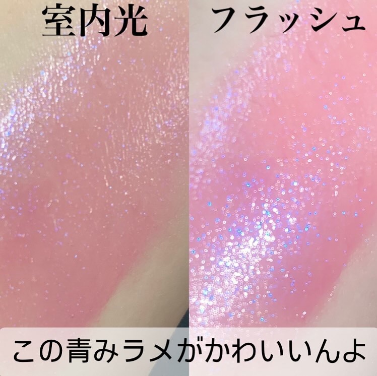青みラメが可愛すぎるハイライト アイシャドウにも最高に可愛いと思う🩷 店舗のお姉さんが好意で裏返そうとしてくれたところが動画になってしまったけど可愛いので このまま載せます笑笑