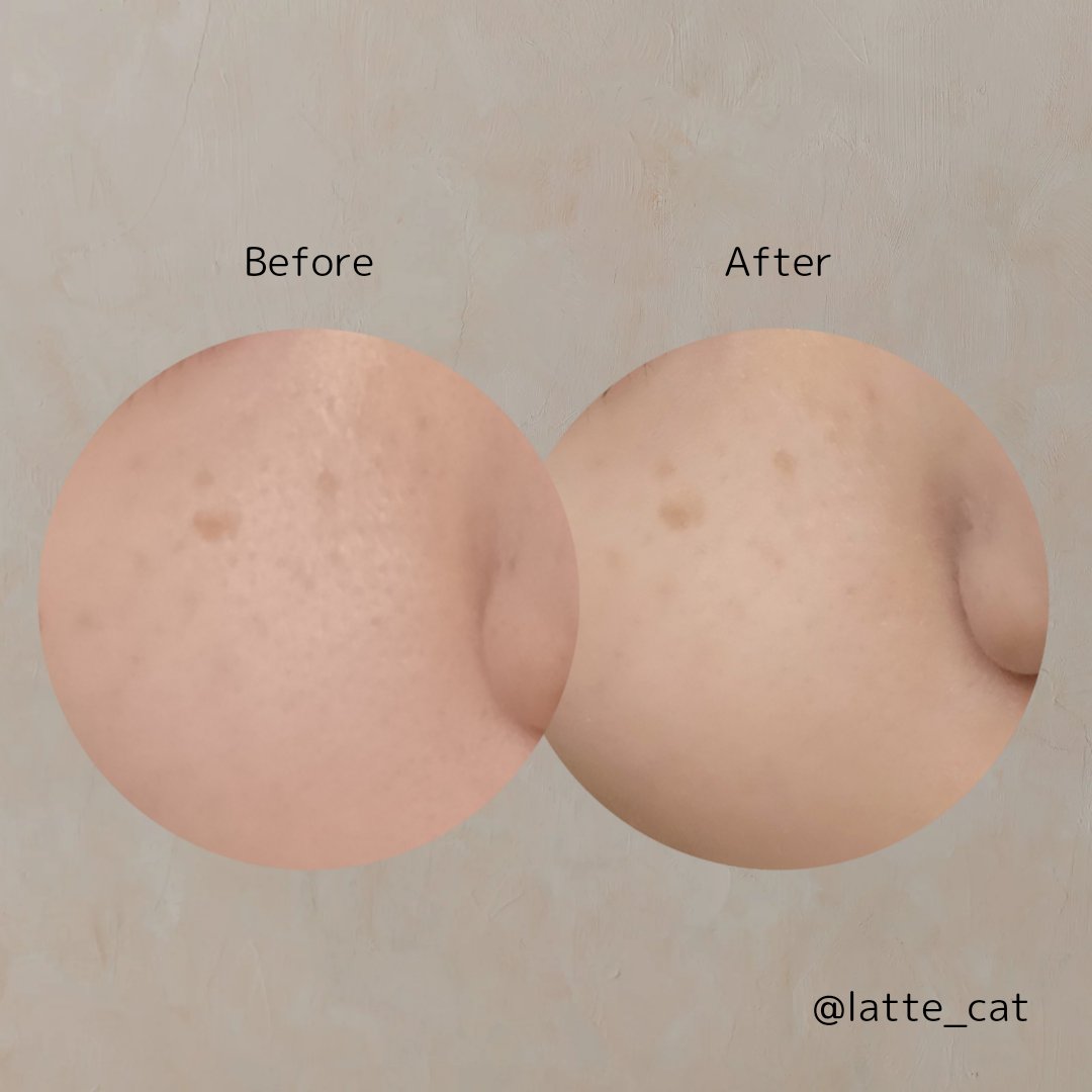 カバー力抜群でかわいいって最高💕 パフは珍しい肉球形?でかわいいだけでなく、小鼻や目元周りにとっても塗りやすかった! 絶妙な形だと思います🐾 仕上がりは高カバーでアプリの美肌フィルターかけたような感覚ですごい👏🏻 鼻の黒ずみや毛穴も隠れていい!! 大量のそばかすの存在感も減った🙌🏻 また、マスク着用しても全く付かずビックリです👀 このクッションファンデは適当にポフポフ塗っても綺麗に仕上がるので時短したい方や高カバーを求めている方におすすめです🙌🏻