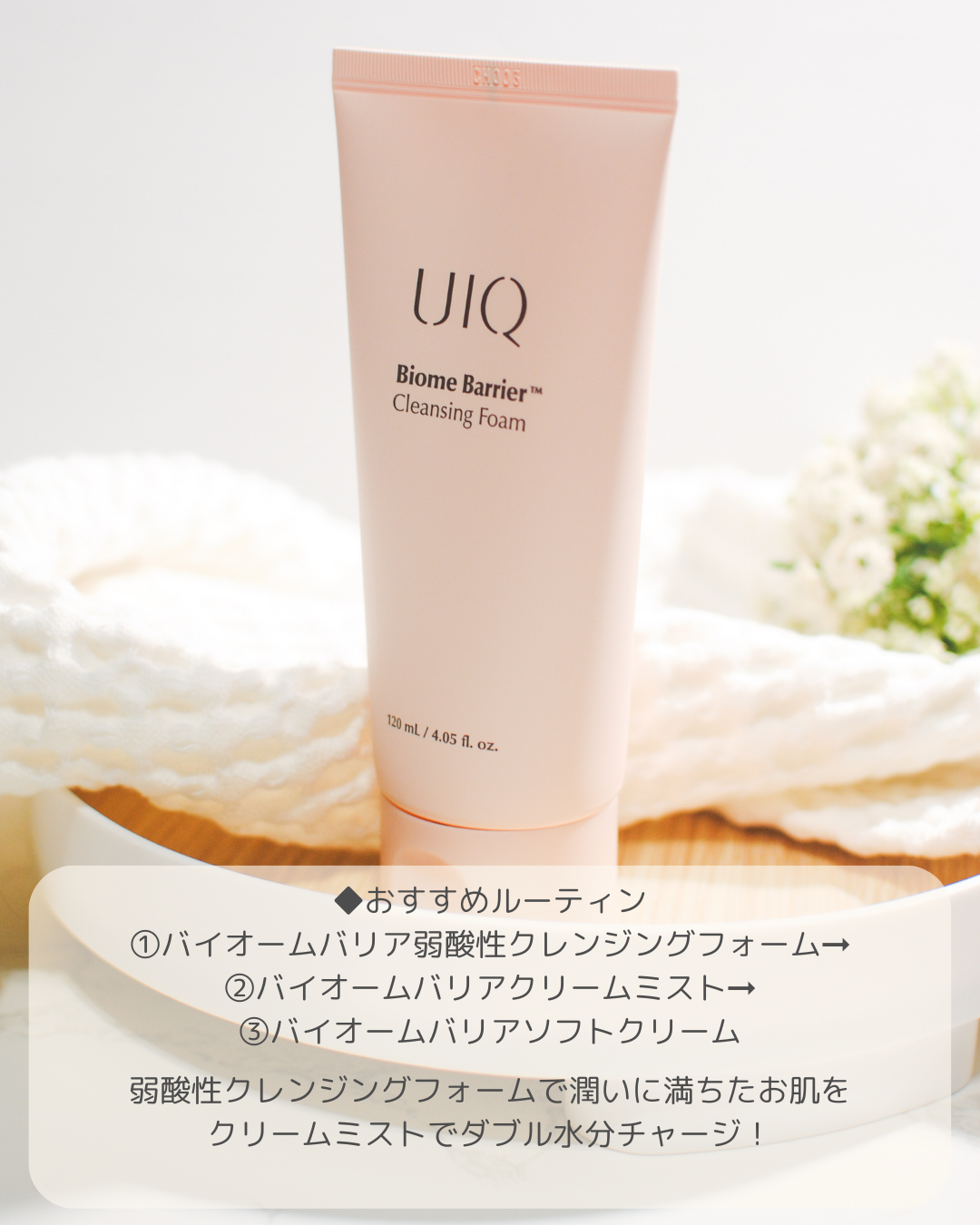 クリーム+ウォーター2層で振って使う高保湿感ミスト❤︎ 微細なミストだから、メイクの上からでもOK UIQの独自開発のキューティーバイオーム™成分配合で、肌バリアをサポートして、肌本来の美しさに導いてくれる♩ 柔らかく溶け、濃いアイライン・マスカラ・リップまでスッキリ落とせるディープクレンジング🤍