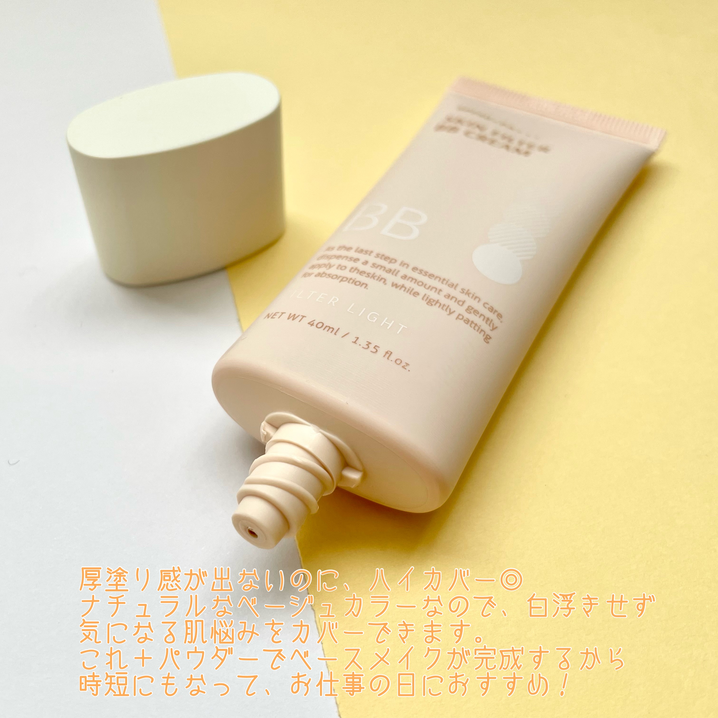 - BOM売上NO.1のBBクリームはフィルターをかけたように滑らかに輝く肌を演出します。 密着するカバー力は長時間持続! スキンフィルターBBクリームの粒子が水分を包み込み持続力を高め、内側はしっとり、表面はもっちりとケアをしてツヤのある肌を演出。 そばかすや赤み、毛穴等の肌悩みをカバーしたい方、厚塗りにならない軽いベースメイクをご希望の方、てからず長時間しっとりとしたツヤ肌メイクをご希望の方にお勧めの商品です!