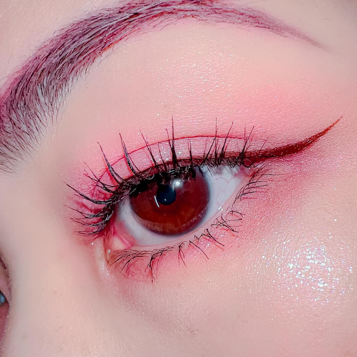ピンクにグレージュも良いですね👌💗 今日は可愛らしい感じにしてみました💕 上下瞼黒目〜目頭側にラメを塗ってキラキラさせております🤩 目尻はマットのピンクを濃いめに重ねて💗 グレージュのアイライナーと相性◎