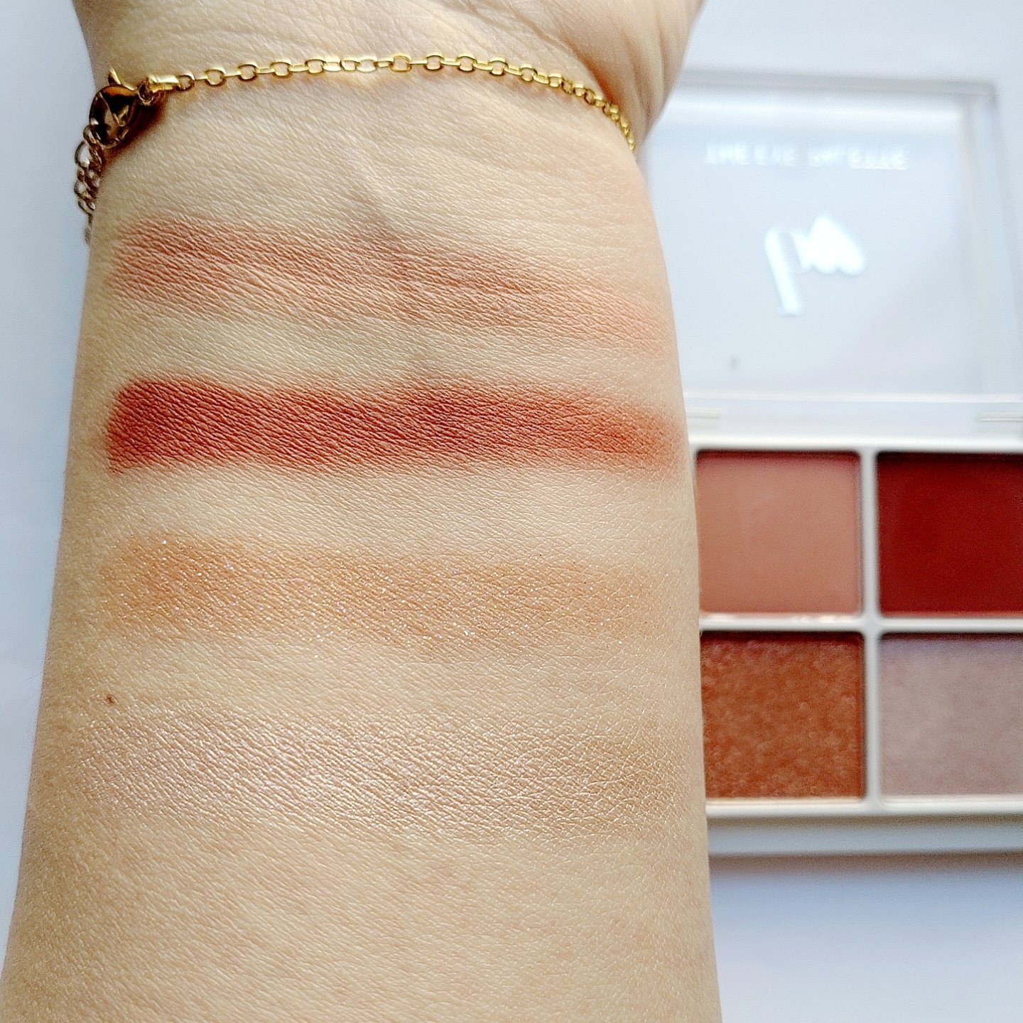 プチプラのクオリティじゃないっ!! 発売前からチェックしていたけれど、ここまで可愛いとは…😆 絶妙カラーで目もとのくすみを飛ばして*明るい印象に🩷 横割りグラデーションでメイクし、立体感をより出したかったので最後に1番左のカラーを上まぶたの真ん中と涙袋にのせています🙆 肌馴染みも良くて粉飛びも感じにくかったです💕 ブラウンの方も店頭に出てたら買おうかな💓