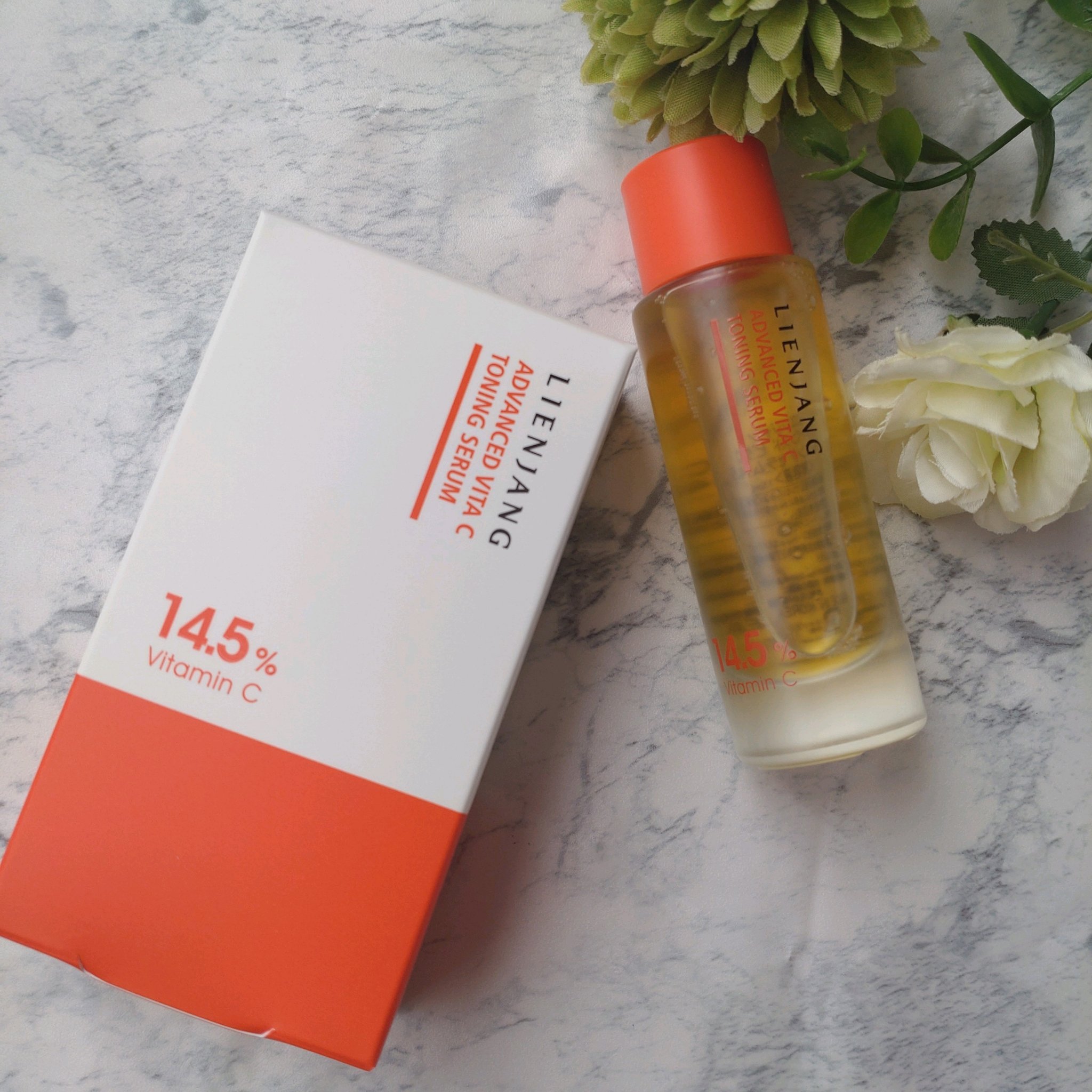 #リエンジャン の「アドバンスド ビタCトーニングセラム14.5」ツナ缶の香りがする!って話題になった美容液!🐟 たしかに蓋開けたらツナ缶だけど、1スポイト分を顔にのばしたら薄まってそんなに気にならなかった✨ 酸化防止対策のキャップも◎ #韓国コスメ #スキンケア #ビタミンC美容