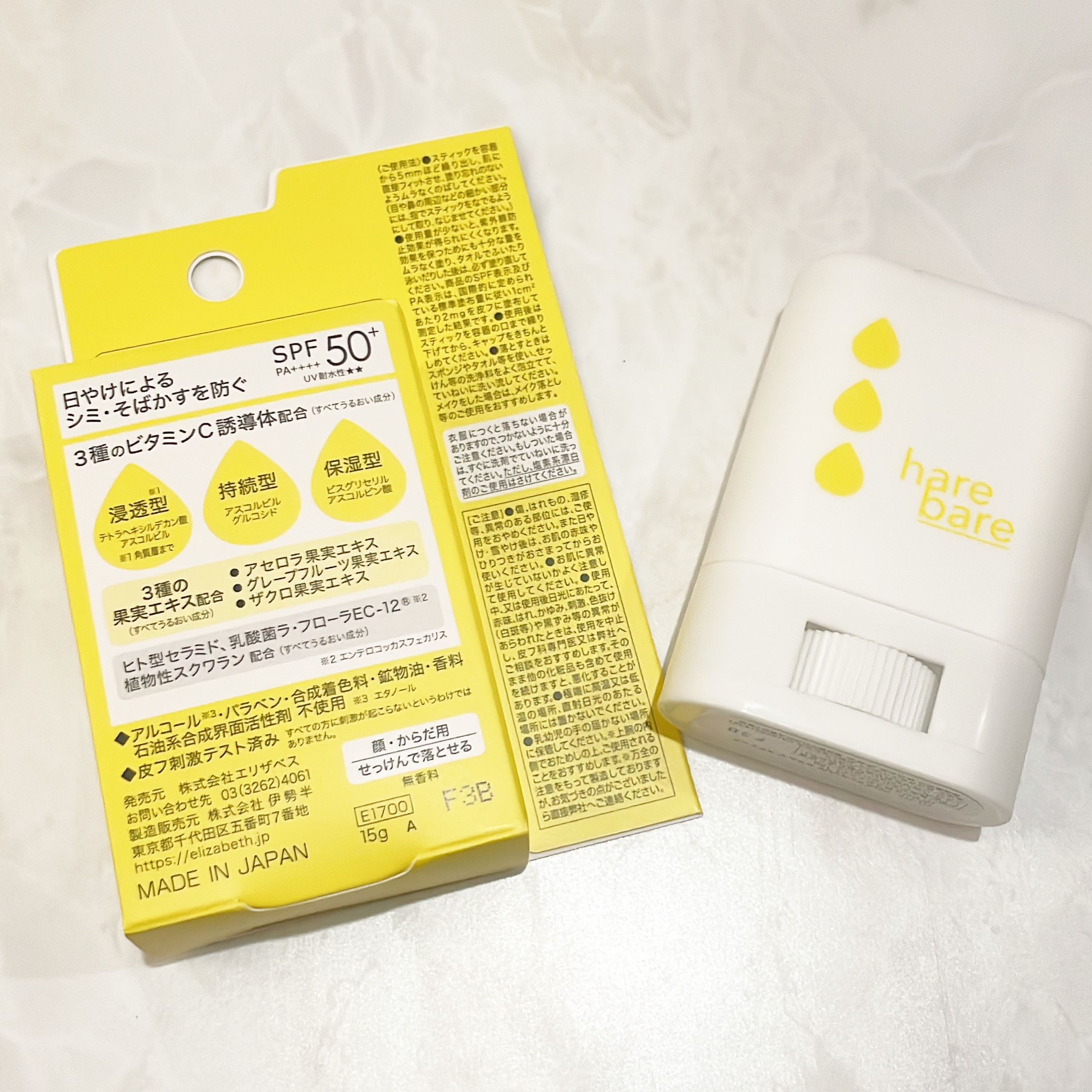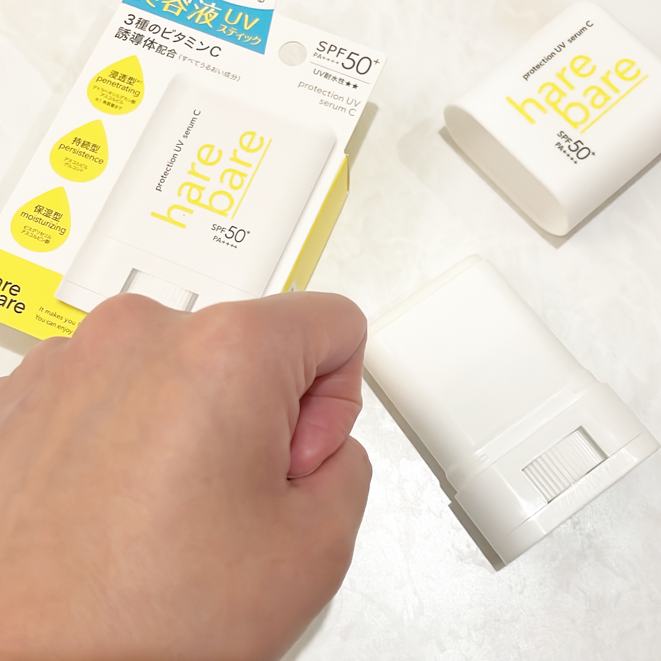 - 手を汚さずスルっと塗れる 3種のビタミンC誘導体*1配合の美容液UVスティック ●国内最高UVカット指数【SPF50+ PA++++】 日やけによるシミ・そばかすを防ぐ UV耐水性★★ 日やけ(またはシミ)の原因となるUVBも肌の奥深く(真皮)まで到達するUVAもしっかりブロックします。 ●3種のビタミンC誘導体*1配合 シリーズ共通 3種の果実エキス(すべてうるおい成分) ・アセロラ果実エキス ・グレープフルーツ果実エキス ・ザクロ果実エキス ・ヒト型セラミド、乳酸菌ラ・フローラEC-12®️*2、植物性スクワラン配合(すべてうるおい成分) ●アルコール *3・パラベン・合成着色料・鉱物油・香料・石油系合成界面活性剤 不使用 ●皮フ刺激テスト済み (すべての方に刺激が起こらないというわけではありません。) ●顔・からだ用 ●せっけんで落とせる ●MADE IN JAPAN 3種のビタミンC誘導体*1配合 手を汚さずにスルッと塗れる美容液UVスティック *1テトラヘキシルデカン酸アスコルビル、アスコルビルグルコシド、ビスグリセリルアスコルビン酸(すべてうるおい成分) *2エンテロコッカスフェカリス *3 エタノール 2024年2月22日(木) ハンズ先行発売 ※一部店舗を除く 2024年3月15日(金)全国発売