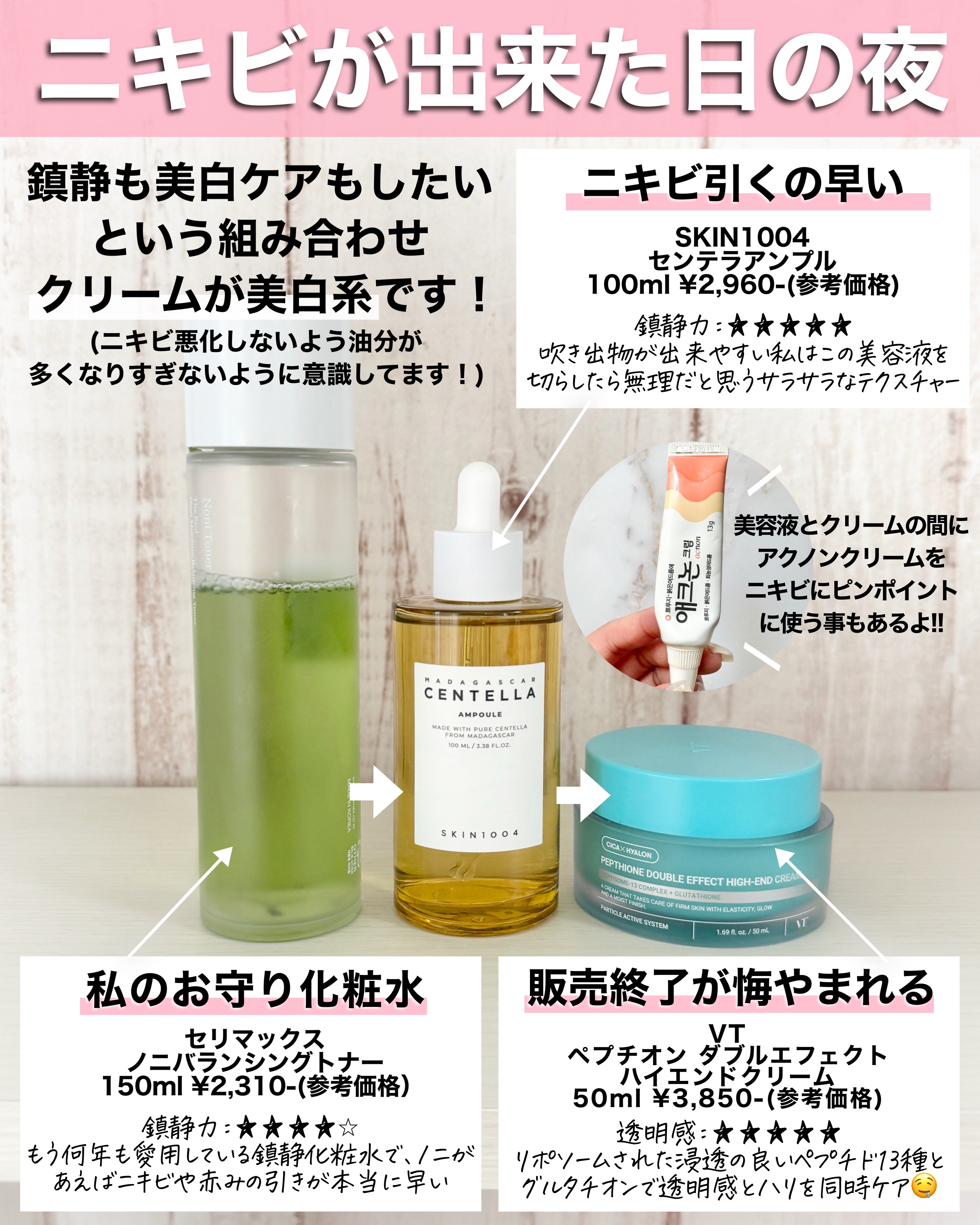 ドクダミ🌿とシラカバ🤫🩵 昔から出てたドクダミ美容液は配合成分がシンプル トラネキサム酸配合の新作かな☺️ 正直、桃セラム🍑も使用感はすきなんだけど ビタミンCはトラネキサム酸に比べて 透明感を感じるのが私は早いです!