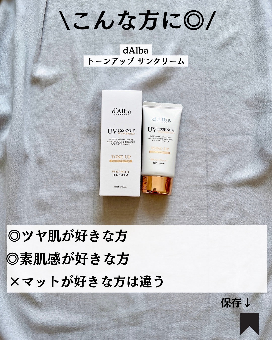 肌がゆらぎがち😭 そんなお肌のお悩みをケアしてくれるおすすめのサンクリーム『ダルバ トーンアップ サンクリーム』 しっとりとしているのに伸びが良くて、重ね塗りしてもベタつきのないテクスチャー✨ 肌の乾燥とくすみケアに特化した《ホワイトトリュフが使用されていて、ツヤ感も演出してくれます♬