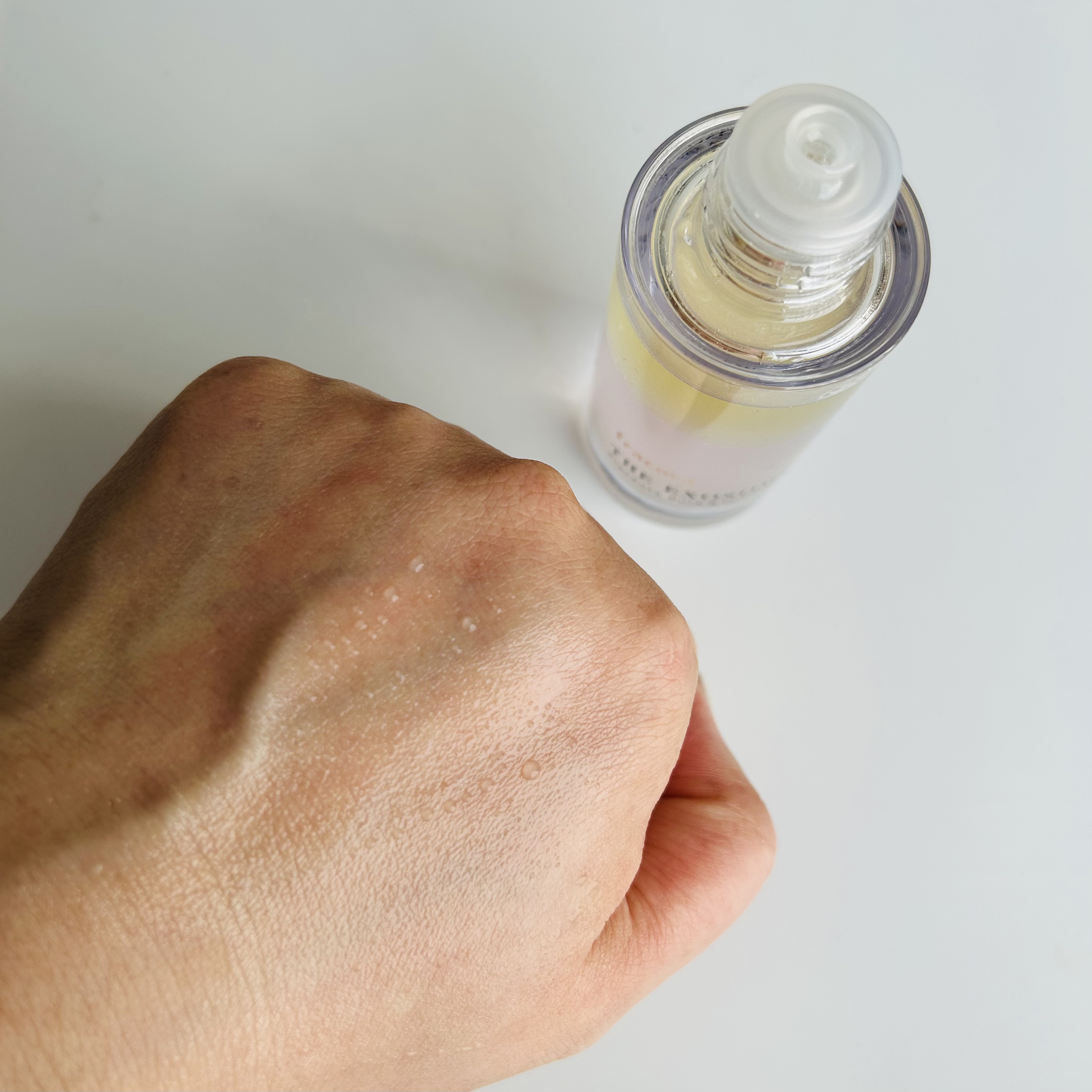 60gと軽くてコンパクトなので持ち歩きにも良く、髪、体と全身に簡単にスプレーができお手軽です スプレーすると白くはならず透明で、のばすと少し艶感がでます 塗ってます感の様な皮膜感や重さもないので快適