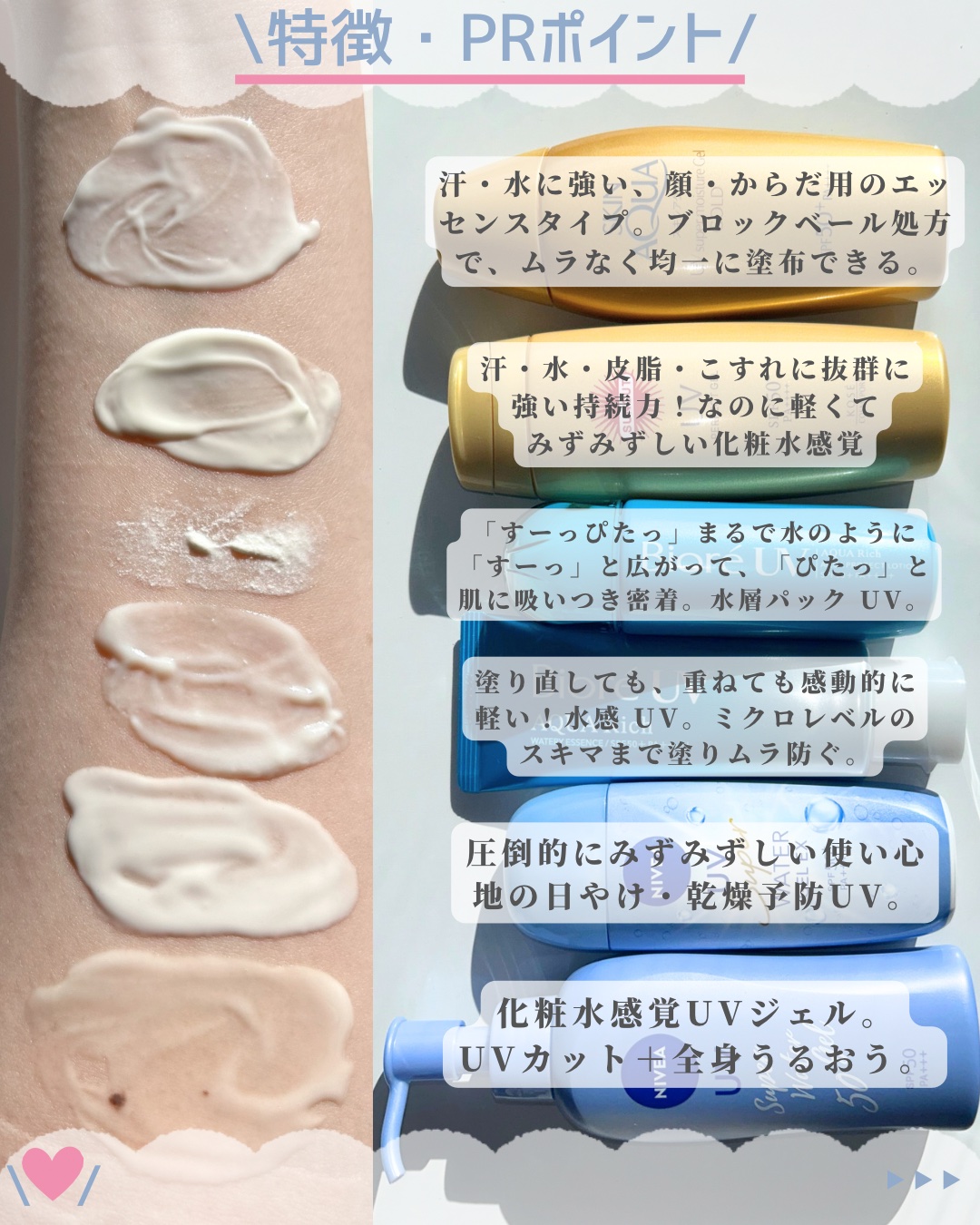 スキンアクアトーンアップUVエッセンスラベンダーニベアUVディーププロテクト&ケアジェルニベアUVディーププロテクト&ケアミルクミストビオレUVアスリズム スキンプロテクトエッセンスサンカット®サンカットRパーフェクトUVスプレー✼••┈┈•...