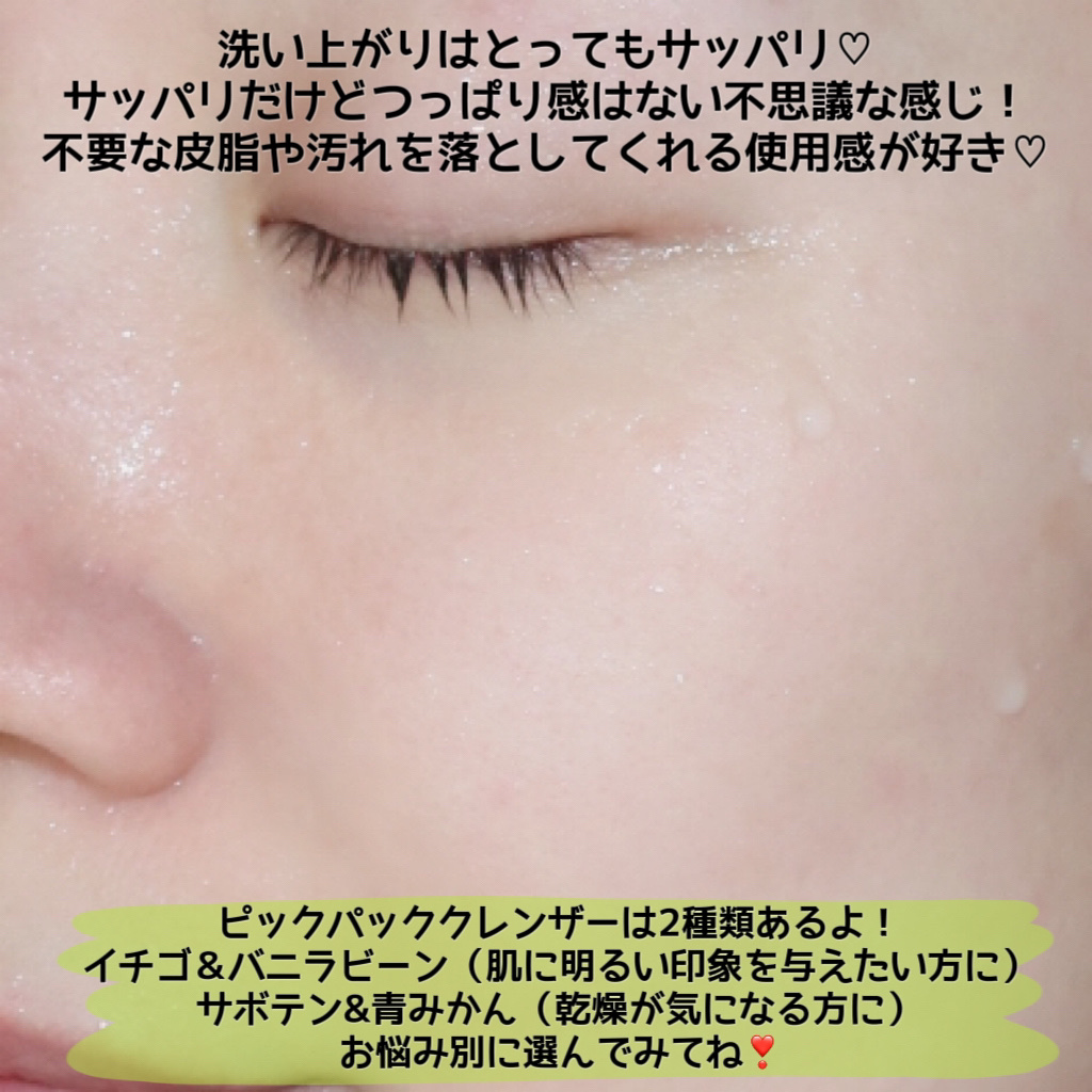 - ピックパック クレンザー サボテン&青みかん シトラスの香りのパックにも洗顔にもなる新感覚2in1クレンザーです。 古い角層や汚れによりくすんだ肌をすっきり洗浄し乾燥により刺激を受けた肌を整え、ケアします。 整肌成分の青みかんエキスは肌を保護しみずみずしいお肌に整え、保湿成分のサボテンエキスでお肌に潤いを与えます。 肌のことを考え、人工色素や人工界面活性剤などは使用しておりません。 ●パックとしてご使用の場合 1.洗顔後、付属のスパチュラで適量を取り出し、乾いた顔(目元・口元を除く)全体に満遍なく塗布する。 2.肌へ十分に馴染むよう、1~2分ほど置く。 3.水またはぬるま湯で優しくこすりながら洗い流す。パックが水に濡れると細かい泡に変わるので、顔全体を包むように洗い流す。 ●洗顔としてご使用の場合 1.濡れた手にサクランボ大1個分ほど取り出し泡立てる。 2. 顔全体に円を描くように優しく洗い、水またはぬるま湯で十分に洗い流す。 *メイクを落とすものではありません。