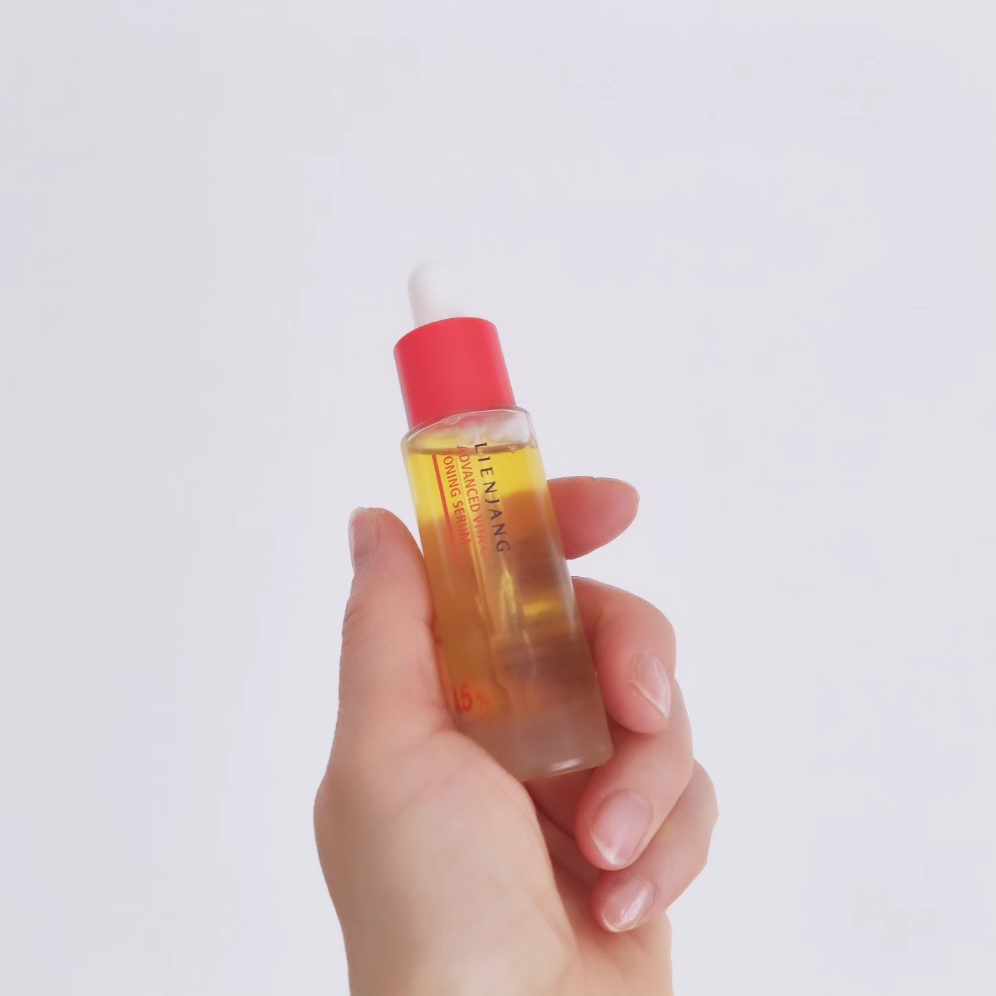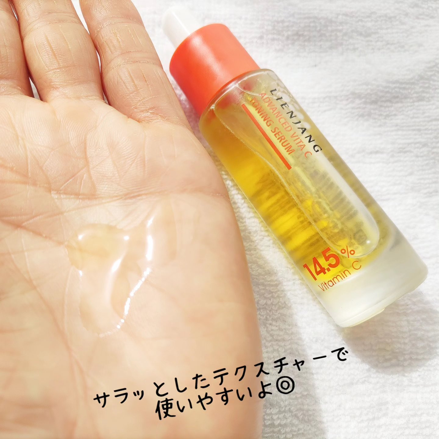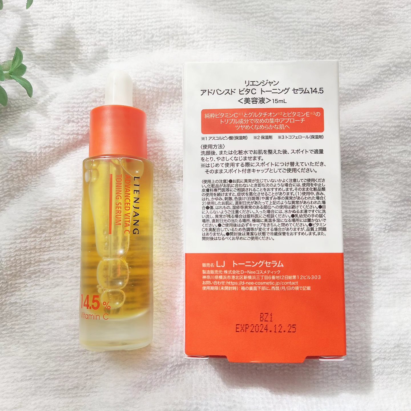 LIENJANG様より頂きました✨✨アドバンスドビタCトーニングセラム先端的、高濃度ビタミンC*美容液韓国のリエンジャンコスメの大人気商品とのこと。黄色のサラッとしたテクスチャー。ツナ缶の香りがするとか👀私はツナ缶って感じはしなかったけど、柑...