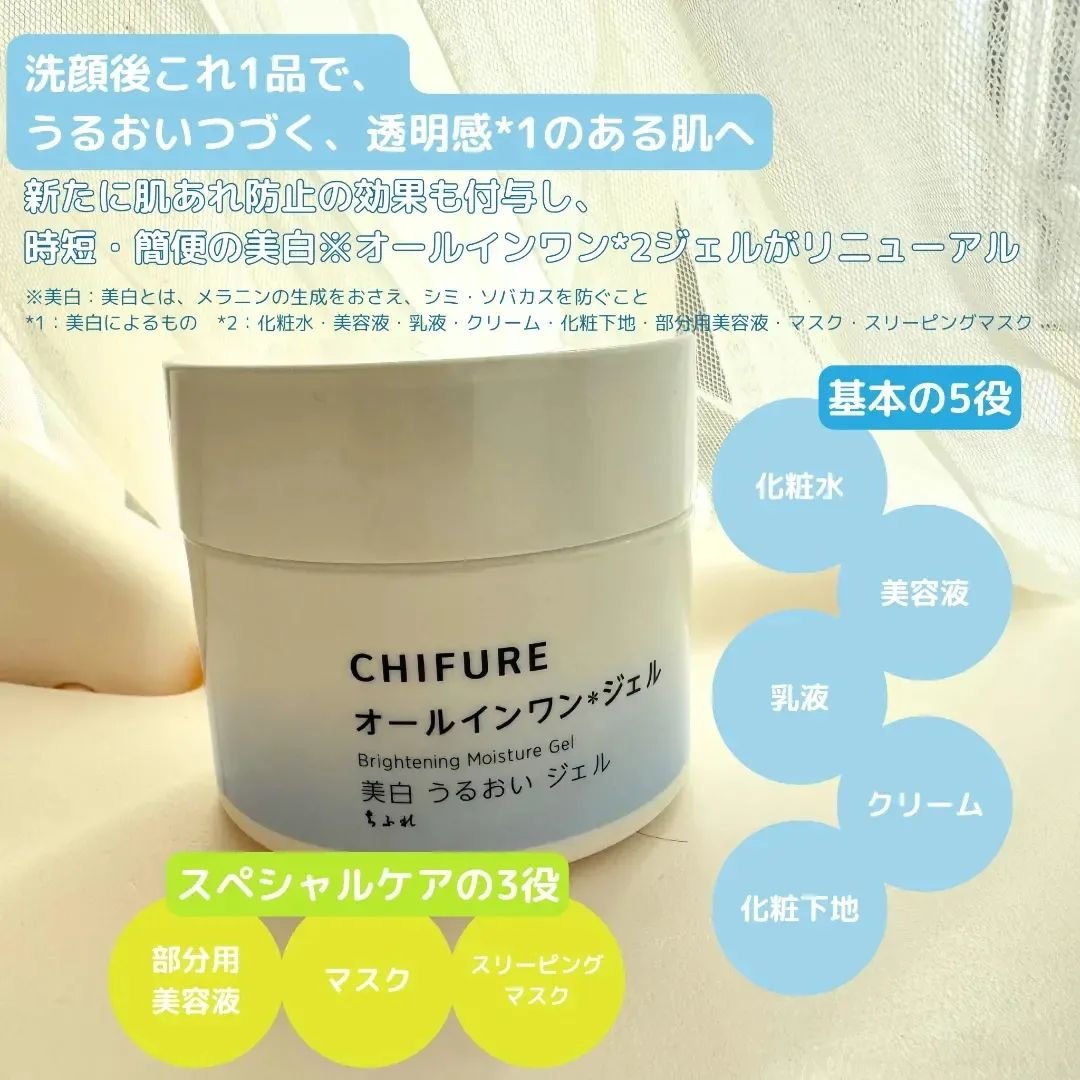 LIPS購入品✨ちふれ(Chifure)美白うるおいジェル内容量:103g価格:1,430円(税込)みずみずしく心地よいジェルで、肌荒れを防ぎながら、しっとり美白💛有効成分トラネキサム酸が配合された美白ジェル。基本の5役+スペシャルケア3役、...