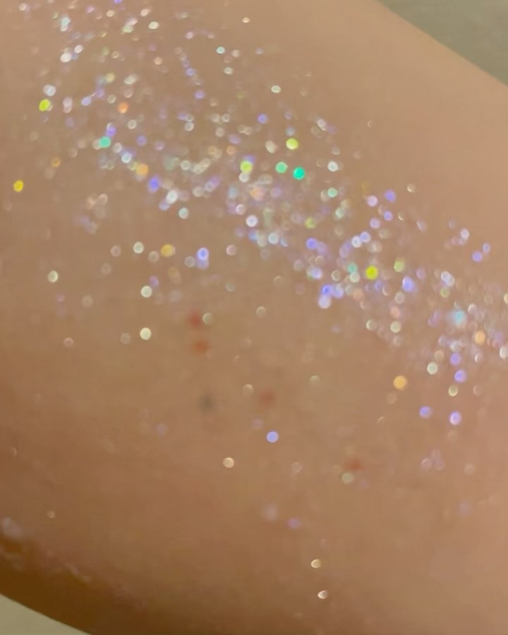 このラメ塗り広げると簡単に小さいラメ、大きいラメがいい感じに塗り広げられます✨ 輝度感が凄く高くて遠くからみてもキラッキラですごい。 わたしが持ってるラメの中で1番大粒なのでメイクにつかってみて新鮮なメイクが出来そうでワクワクしてます(*∩∀∩*)