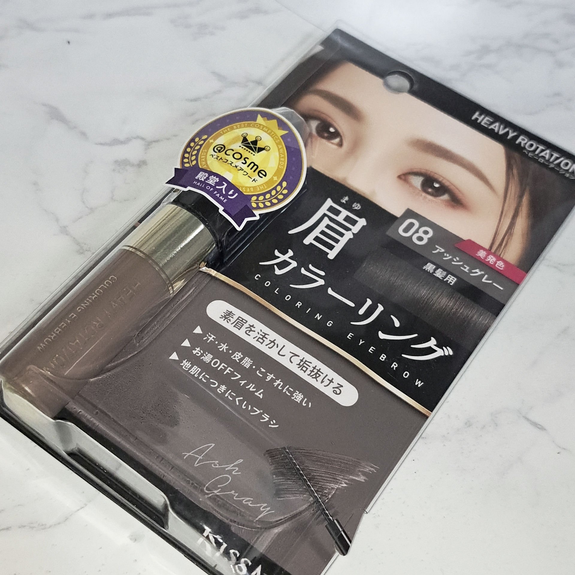 眉マスカラと言えばこれ! というぐらい有名なヘビーローテーション. 08のアッシュグレーは、黒髪用 と記載されていて、本当に黒髪にぴったりな色! 柔らかい印象の眉毛に仕上がります⭕ ベタっとならないし、 なによりもめちゃくちゃコスパがいい!!! 学生でも買いやすいお手頃価格で、ドラッグストア、PLAZA、 LOFT、ドンキ等どこにでも売ってる👌
