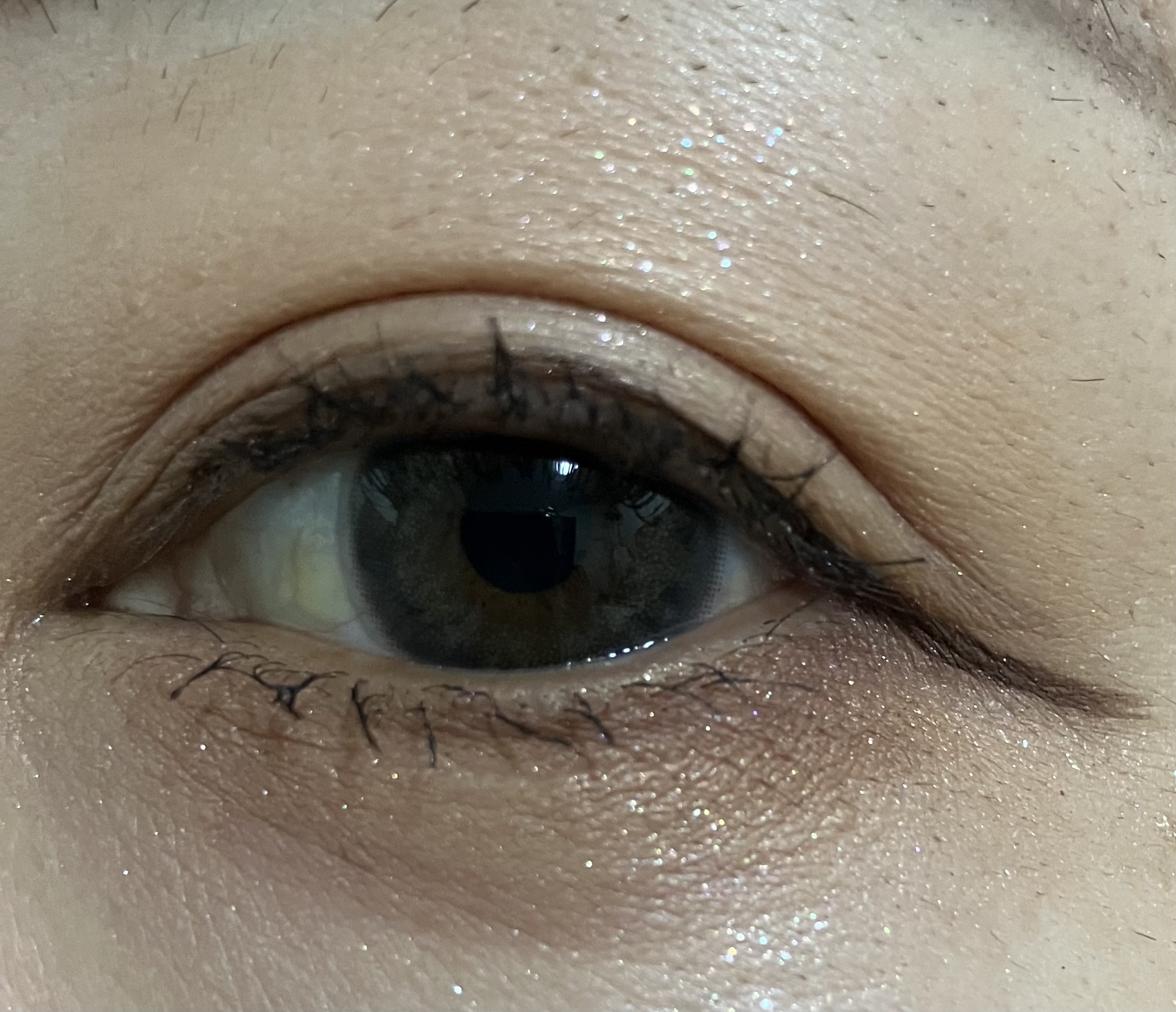KATEエレクトリックショックアイズ KATEデザイニングブラウンアイズスプリングブラウン 上2色は、シマーなラメ。下4色が、カラーが淡く出るツヤ。な感じがしました✨️