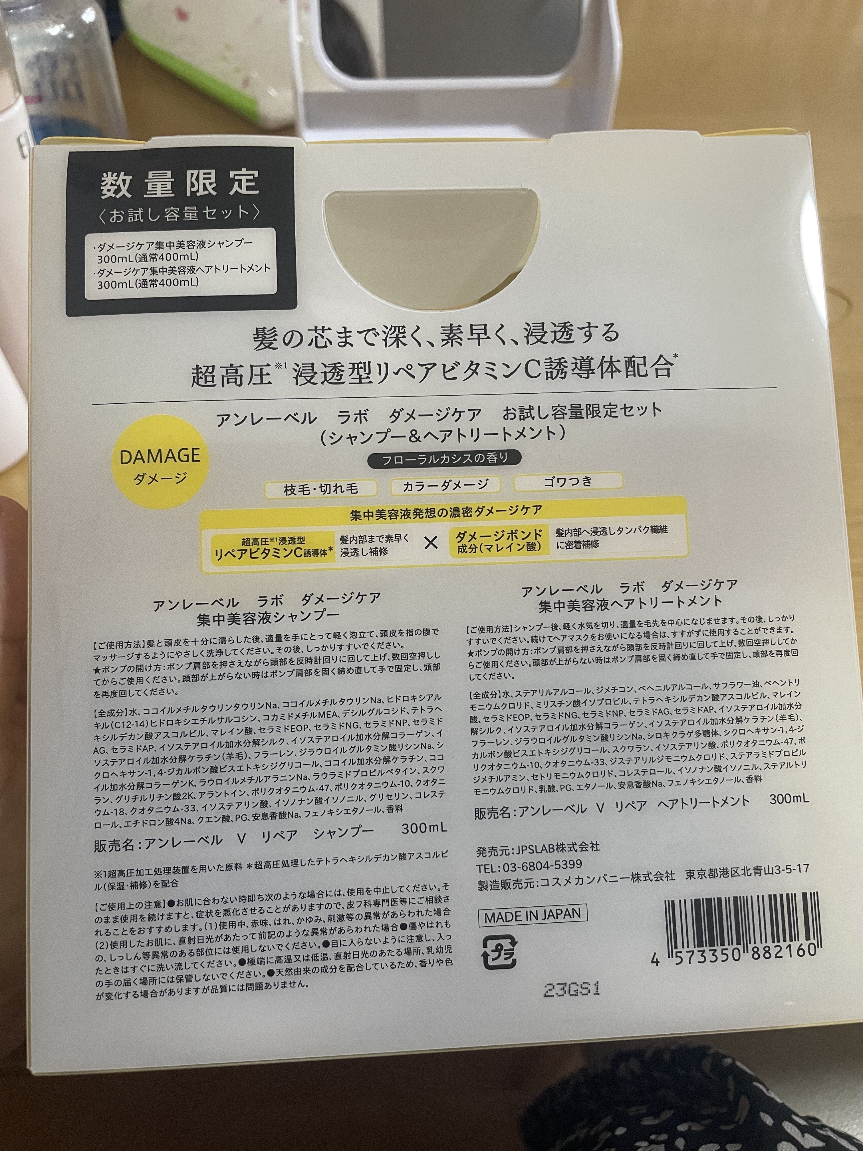 - <シャンプー 本体(400ml)> 水、ココイルメチルタウリンタウリンNa、ココイルメチルタウリンNa、ヒドロキシアルキル(C12-14)ヒドロキシエチルサルコシン、コカミドメチルMEA、デシルグルコシド、テトラヘキシルデカン酸アスコルビル、マレイン酸、セラミドEOP、セラミドNG、セラミドNP、セラミドAG、セラミドAP、イソステアロイル加水分解シルク、イソステアロイル加水分解コラーゲン、イソステアロイル加水分解ケラチン(羊毛)、フラーレン、ジラウロイルグルタミン酸リシンNa、シクロヘキサン-1,4-ジカルボン酸ビスエトキシジグリコール、ココイル加水分解ケラチン、ココイル加水分解コラーゲンK、ラウロイルメチルアラニンNa、ラウラミドプロピルベタイン、スクワラン、グリチルリチン酸2K、アラントイン、ポリクオタニウム-47、ポリクオタニウム-10、クオタニウム-18、クオタニウム-33、イソステアリン酸、イソノナン酸イソノニル、グリセリン、コレステロール、エチドロン酸4Na、クエン酸、PG、安息香酸Na、フェノキシエタノール、香料 <ヘアトリートメント 本体(400ml)> 水、ステアリルアルコール、ジメチコン、ベヘニルアルコール、サフラワー油、ベヘントリモニウムクロリド、ミリスチン酸イソプロピル、テトラヘキシルデカン酸アスコルビル、マレイン酸、セラミドEOP、セラミドNG、セラミドNP、セラミドAG、セラミドAP、イソステアロイル加水分解シルク、イソステアロイル加水分解コラーゲン、イソステアロイル加水分解ケラチン(羊毛)、フラーレン、ジラウロイルグルタミン酸リシンNa、シロキクラゲ多糖体、シクロヘキサン-1,4-ジカルボン酸ビスエトキシジグリコール、スクワラン、イソステアリン酸、ポリクオタニウム-47、ポリクオタニウム-10、クオタニウム-33、ジステアリルジモニウムクロリド、ステアラミドプロピルジメチルアミン、セトリモニウムクロリド、コレステロール、イソノナン酸イソノニル、ステアルトリモニウムクロリド、乳酸、PG、エタノール、安息香酸Na、フェノキシエタノール、香料 <シャンプー 詰め替え(310ml)> 水、ステアリルアルコール、ジメチコン、ベヘニルアルコール、サフラワー油、ベヘントリモニウムクロリド、ミリスチン酸イソプロピル、テトラヘキシルデカン酸アスコルビル、マレイン酸、セラミドEOP、セラミドNG、セラミドNP、セラミドAG、セラミドAP、イソステアロイル加水分解シルク、イソステアロイル加水分解コラーゲン、イソステアロイル加水分解ケラチン(羊毛)、フラーレン、ジラウロイルグルタミン酸リシンNa、シロキクラゲ多糖体、シクロヘキサン-1,4-ジカルボン酸ビスエトキシジグリコール、スクワラン、イソステアリン酸、ポリクオタニウム-47、ポリクオタニウム-10、クオタニウム-33、ジステアリルジモニウムクロリド、ステアラミドプロピルジメチルアミン、セトリモニウムクロリド、コレステロール、イソノナン酸イソノニル、ステアルトリモニウムクロリド、乳酸、PG、エタノール、安息香酸Na、フェノキシエタノール、香料 <ヘアトリートメント 詰め替え(310ml)> 水、ステアリルアルコール、ジメチコン、ベヘニルアルコール、サフラワー油、ベヘントリモニウムクロリド、ミリスチン酸イソプロピル、テトラヘキシルデカン酸アスコルビル、マレイン酸、セラミドEOP、セラミドNG、セラミドNP、セラミドAG、セラミドAP、イソステアロイル加水分解シルク、イソステアロイル加水分解コラーゲン、イソステアロイル加水分解ケラチン(羊毛)、フラーレン、ジラウロイルグルタミン酸リシンNa、シロキクラゲ多糖体、シクロヘキサン-1,4-ジカルボン酸ビスエトキシジグリコール、スクワラン、イソステアリン酸、ポリクオタニウム-47、ポリクオタニウム-10、クオタニウム-33、ジステアリルジモニウムクロリド、ステアラミドプロピルジメチルアミン、セトリモニウムクロリド、コレステロール、イソノナン酸イソノニル、ステアルトリモニウムクロリド、乳酸、PG、エタノール、安息香酸Na、フェノキシエタノール、香料 <お試し容量セット(300+300ml)> 水、ココイルメチルタウリンタウリンNa、ココイルメチルタウリンNa、ヒドロキシアルキル(C12-14)ヒドロキシエチルサルコシン、コカミドメチルMEA、デシルグルコシド、テトラヘキシルデカン酸アスコルビル、マレイン酸、セラミドEOP、セラミドNG、セラミドNP、セラミドAG、セラミドAP、イソステアロイル加水分解シルク、イソステアロイル加水分解コラーゲン、イソステアロイル加水分解ケラチン(羊毛)、フラーレン、ジラウロイルグルタミン酸リシンNa、シクロヘキサン-1,4-ジカルボン酸ビスエトキシジグリコール、ココイル加水分解ケラチン、ココイル加水分解コラーゲンK、ラウロイルメチルアラニンNa、ラウラミドプロピルベタイン、スクワラン、グリチルリチン酸2K、アラントイン、ポリクオタニウム-47、ポリクオタニウム-10、クオタニウム-18、クオタニウム-33、イソステアリン酸、イソノナン酸イソノニル、グ