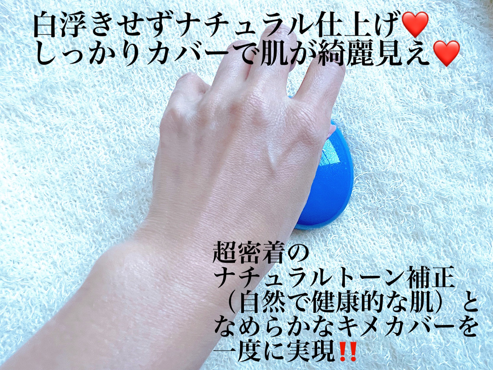 肌へファンデーションを貼るようにそっと押さえながらトントン叩いてなじませて使います✨ 潤いがありながら仕上がりはサラサラ‼️ しっかり密着して崩れにくく持続力アリ🙆♀️ なかなか良いよ😉