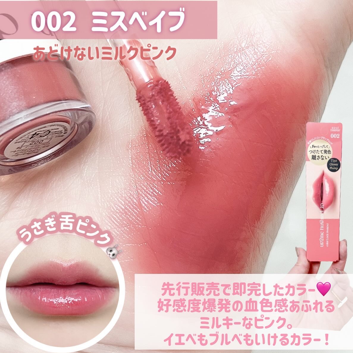 え、かっわ!!!!!! なにこのピュアなピンク!!!!! まさにくもりなき純情ピンク! ふんわり塗ったら 美少女の粘膜リップになるのよ…! ブルベさんが得意そうなカラーだけど くすみがないし青みが強くないから イエベ春でもいけました✌️🌸