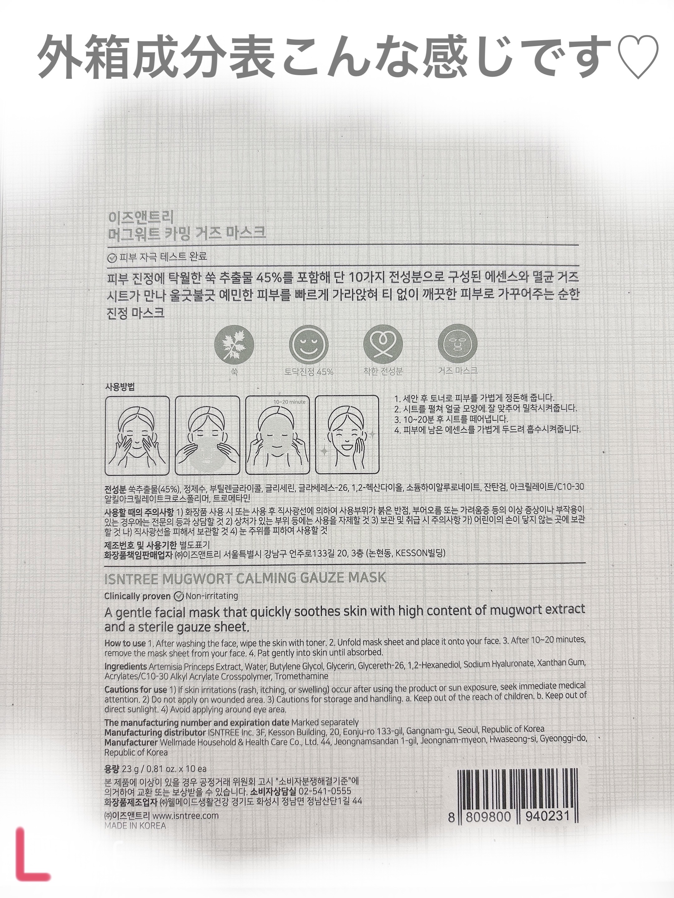Isntree 超低分子シートマスク |