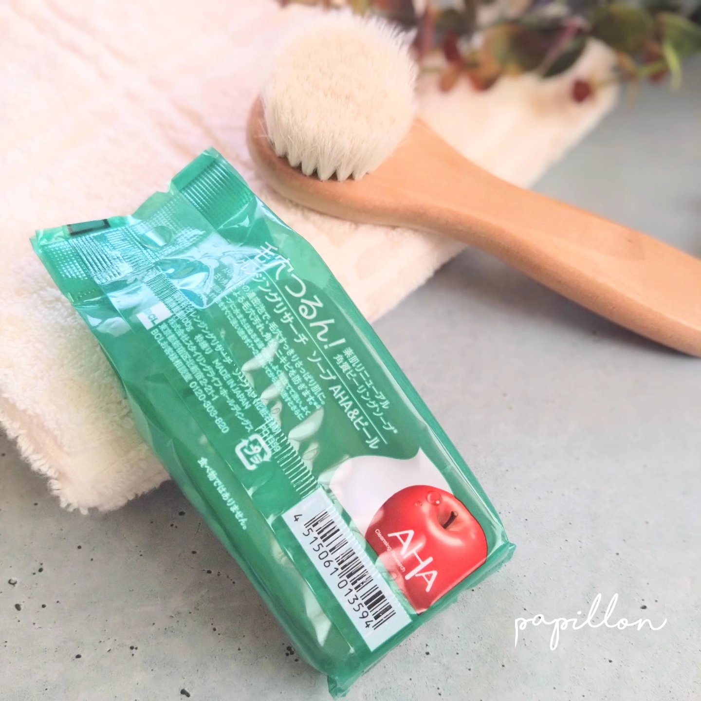 - 洗うだけで角質・毛穴をつるん!AHA*1 配合の角質ピーリング石鹸*2。 顔・ボディ用 ●トリプルAHA*1 配合の濃密泡で毛穴つるんとさっぱり肌に。 古い角質による毛穴汚れ・角栓・ニキビを防ぎ*3、スキンケアが浸透しやすい肌に。(角層まで) 角質ケア成分:トリプルAHA*1、BHA(サリチル酸)、パパイン ●美容保湿成分配合(リンゴセラミド*4、ティーツリー葉油) フレッシュアップルの香り *1 リンゴ酸、乳酸、グリコール酸(全て角質ケア) *2 古い角質を除去すること *3 洗浄による *4 リンゴ果実エキス
