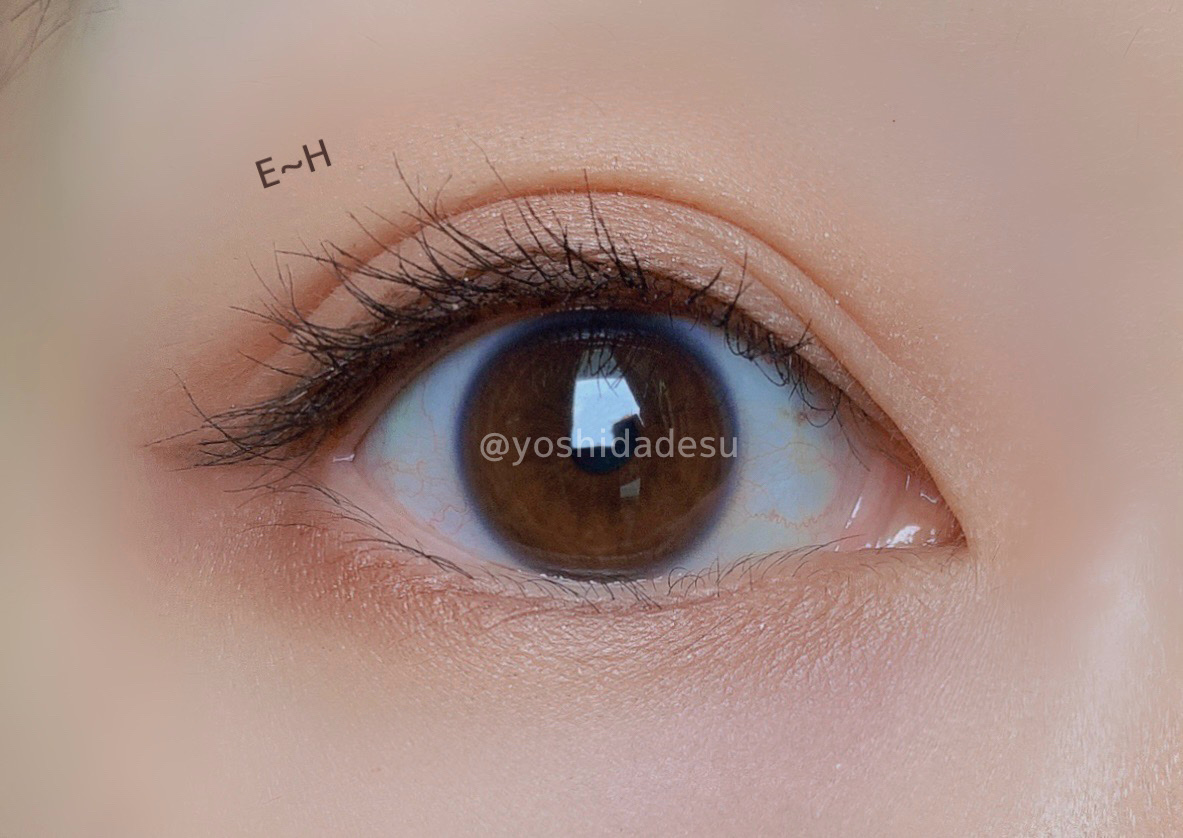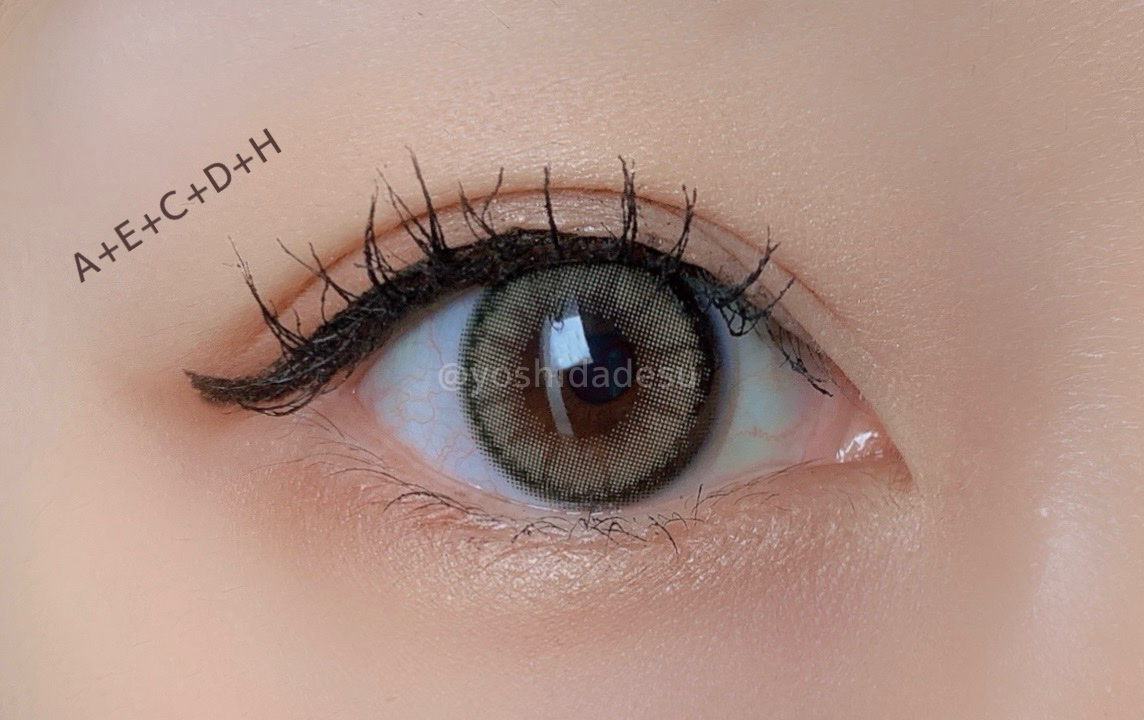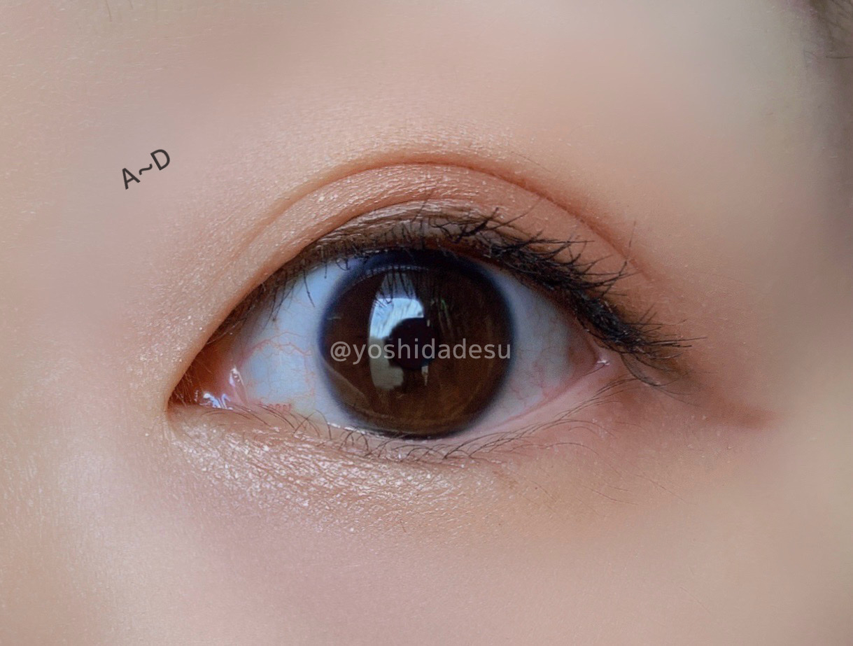 波打つような蓋のパケがもう既にかわいい! この波打つ感じのおかげで使用してても汚れも目立ちにくいといいな🤔 手のひらサイズのコンパクトなパレットなので旅行やお泊まりの時でもポーチにinしやすいサイズ感! パール、マット、ラメの異なるアイシャドウがぎゅぎゅっと集まってて尚且つ捨て色のないパレットで粉の質感はしっとりめ。 発色の強さはD.H>B.G>E>A.C.Fといった感じでした。 ラメの存在感はB.F.G>Cでした。 パールカラーがどちらの色もぼかしてもそのままラインを引いても使い勝手が良かったです🌸