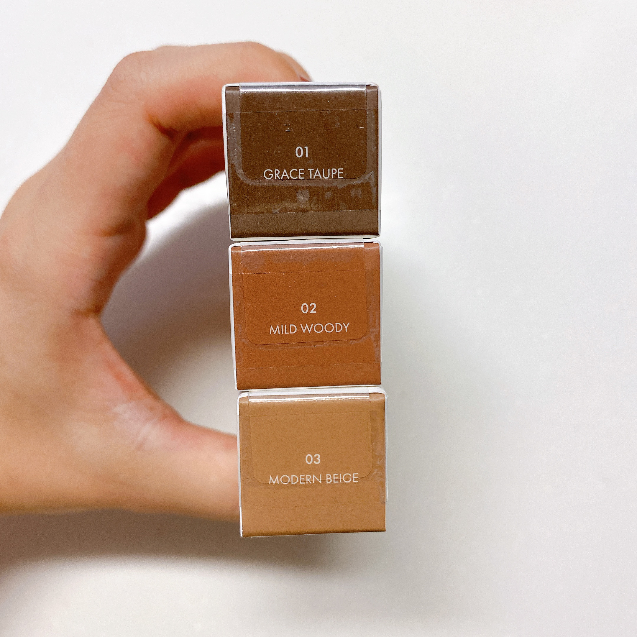 - <01 グレーストープ(GRACE TAUPE)> イソドデカン、トリメチルシロキシケイ酸、セレシン、タルク、酸化チタン、ジステアルジモニウムヘクトライト、マイクロクリスタリンワックス、パルミチン酸デキストリン、酸化鉄、炭酸プロピレン、ポリプロピルシルセスキオキサン、(パルミチン酸/エチルヘキサン酸)デキストリン、イソステアリン酸PEG-20グリセリル、ポリイソブテン、ポリメチルシルセスキオキサン、トリエトキシカプリリルシラン、カプリル酸グリセリル、シリカ <02 マイルドウッディー(MILD WOODY)> イソドデカン、トリメチルシロキシケイ酸、セレシン、タルク、ジステアルジモニウムヘクトライト、マイクロクリスタリンワックス、酸化チタン、パルミチン酸デキストリン、酸化鉄、炭酸プロピレン、ポリプロピルシルセスキオキサン、(パルミチン酸/エチルヘキサン酸)デキストリン、イソステアリン酸PEG-20グリセリル、ポリイソブテン、ポリメチルシルセスキオキサン、トリエトキシカプリリルシラン、カプリル酸グリセリル、シリカ <03 モダンベージュ(MODERN BEIGE)> イソドデカン、トリメチルシロキシケイ酸、セレシン、酸化チタン、タルク、ジステアルジモニウムヘクトライト、マイクロクリスタリンワックス、パルミチン酸デキストリン、酸化鉄、炭酸プロピレン、ポリプロピルシルセスキオキサン、パルミチン酸/エチルヘキサン酸)デキストリン、イソステアリン酸PEG-20グリセリル、ポリイソブテン、ポリメチルシルセスキオキサン、トリエトキシカプリリルシラン、カプリル酸グリセリル、シリカ <04 メリーブロンディー(MERRY BLONDY)> イソドデカン、トリメチルシロキシケイ酸、セレシン、タルク、酸化チタン、ジステアルジモニウムヘクトライト、マイクロクリスタリンワックス、パルミチン酸デキストリン、酸化鉄、炭酸プロピレン、ポリプロピルシルセスキオキサン、(パルミチン酸/エチルヘキサン酸)デキストリン、イソステアリン酸PEG-20グリセリル、ポリイソブテン、ポリメチルシルセスキオキサン、トリエトキシカプリリルシラン、カプリル酸グリセリル、シリカ <05 ダスキーローズ(DUSKY ROSE)(日本限定)> イソドデカン、トリメチルシロキシケイ酸、セレシン、二酸化チタン、タルク、ジステアルジモニウムヘクトライト、マイクロクリスタリンワックス、パルミチン酸デキストリン、炭酸プロピレン、酸化鉄、ポリプロピルシルセスキオキサン、(パルミチン酸/エチルヘキサン酸)デキストリン、イソステアリン酸PEG-20グリセリル、ポリイソブテン、グンジョウ、トリエトキシカプリリルシラン、カプリル酸グリセリル <06 ベリーオーキッド(BERRY ORCHID)(日本限定)> イソドデカン、トリメチルシロキシケイ酸、タルク、セレシン、ジステアルジモニウムヘクトライト、マイクロクリスタリンワックス、二酸化チタン、パルミチン酸デキストリン、酸化鉄、炭酸プロピレン、コチニール、ポリプロピルシルセスキオキサン、(パルミチン酸/エチルヘキサン酸)デキストリン、イソステアリン酸PEG-20グリセリル、ポリイソブテン、トリエトキシカプリリルシラン、カプリル酸グリセリル、マルトデキストリン <07 アプリコットタン(APRICOT TAN)> イソドデカン、トリメチルシロキシケイ酸、セレシン、タルク、ジステアルジモニウムヘクトライト、マイクロクリスタリンワックス、酸化チタン、パルミチン酸デキストリン、グンジョウ、酸化鉄、炭酸プロピレン、ポリプロピルシルセスキオキサン、(パルミチン酸/エチルヘキサン酸)デキストリン、イソステアリン酸PEG-20グリセリル、ポリイソブテン、トリエトキシカプリリルシラン、カプリル酸グリセリル <08 ムーングレー(MOON GRAY)> イソドデカン、トリメチルシロキシケイ酸、酸化チタン、セレシン、タルク、ジステアルジモニウムヘクトライト、マイクロクリスタリンワックス、パルミチン酸デキストリン、酸化鉄、炭酸プロピレン、ポリプロピルシルセスキオキサン、(パルミチン酸/エチルヘキサン酸)デキストリン、イソステアリン酸PEG-20グリセリル、ポリイソブテン、トリエトキシカプリリルシラン、カプリル酸グリセリル <09 サンドグレー(SAND GREY)> イソドデカン、トリメチルシロキシケイ酸、酸化チタン、セレシン、ジステアルジモニウムヘクトライト、マイクロクリスタリンワックス、タルク、パルミチン酸デキストリン、炭酸プロピレン、ポリプロピルシルセスキオキサン、(パルミチン酸/エチルヘキサン酸)デキストリン、イソステアリン酸PEG-20グリセリル、ポリイソブテン、酸化鉄、トリエトキシカプリリルシラン、カプリル酸グリセリル <10 ブロッサムグレー(BLOSSOM GREY)> イソドデカン、トリメチルシロキシケイ酸、酸化チタン、セレシン、タルク、ジステアルジモニウムヘクトライト、マイクロクリスタリンワックス、パルミチン酸デキストリン、炭酸プロピレン、ポリプロピルシルセスキオキサン、(パルミチン酸/エチルヘキサン酸)デキストリン、イソステアリ