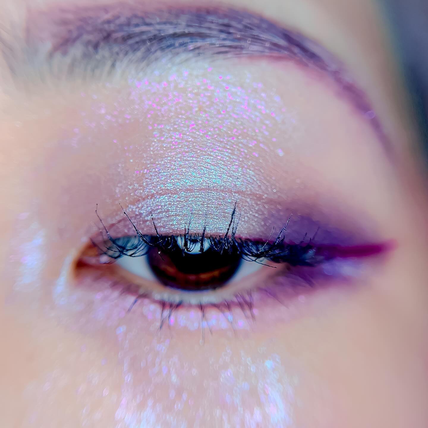 ピンクにグレージュも良いですね👌💗 今日は可愛らしい感じにしてみました💕 上下瞼黒目〜目頭側にラメを塗ってキラキラさせております🤩 目尻はマットのピンクを濃いめに重ねて💗 グレージュのアイライナーと相性◎