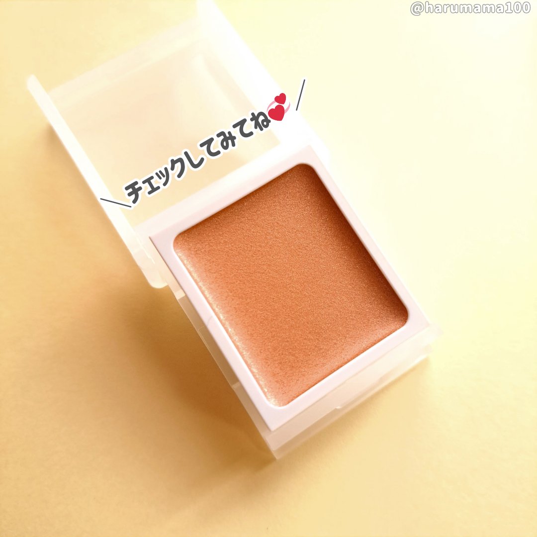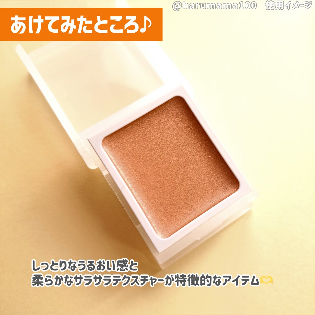 しっとりしたツヤ感のあるクリームタイプのアイシャドウ。塗ってしばらくするとサラサラのパウダーに変化するのでペタつきは少なめ。 単色でパパッと上瞼に広げ、二重幅にだけ重ねるだけでナチュラルに仕上がるので時短メイクに良き◎ 指塗りが一番均一で綺麗に仕上がるかな?二重線に溜まりやすい方は塗りすぎか、もしくはアイベースを仕込むといいかもです☝️