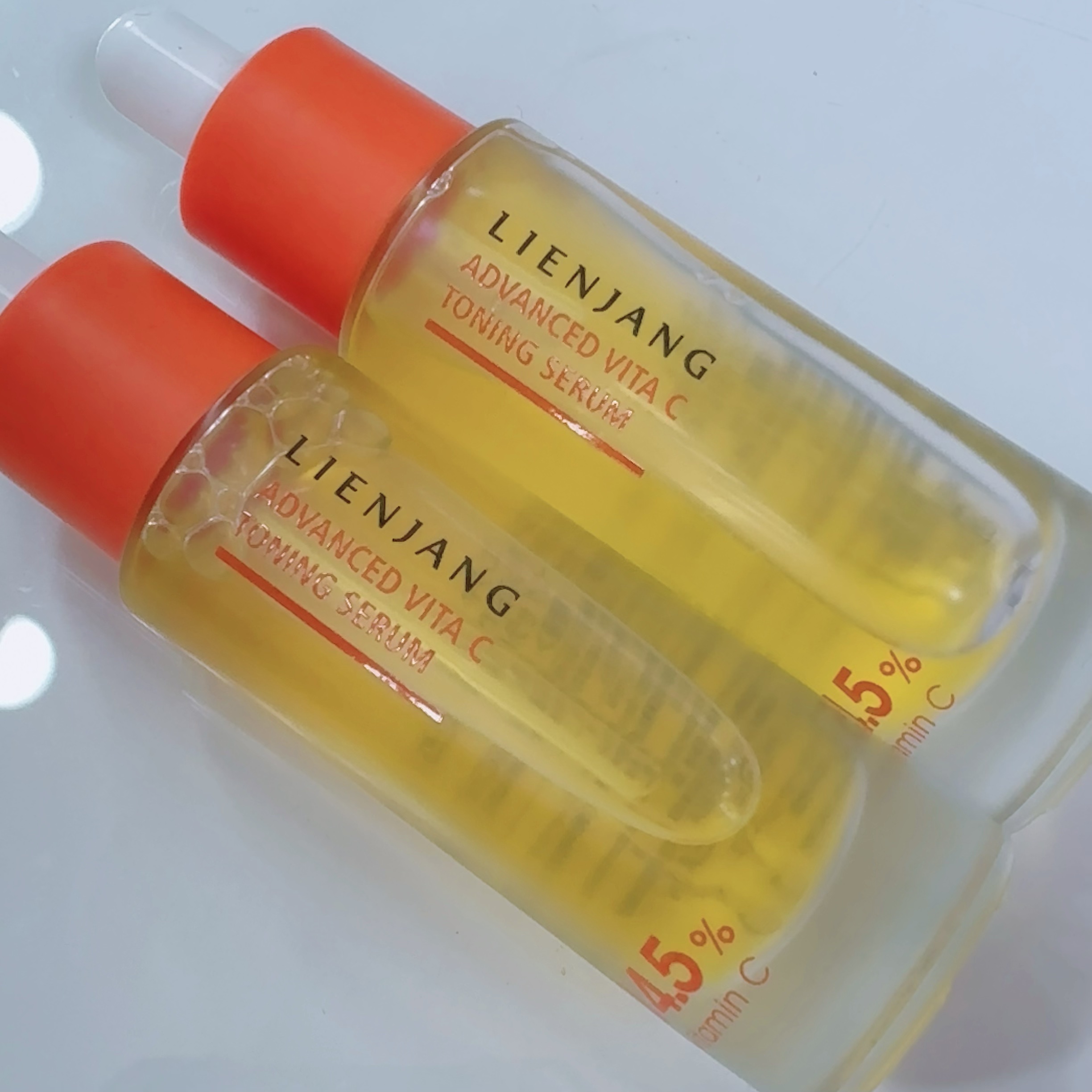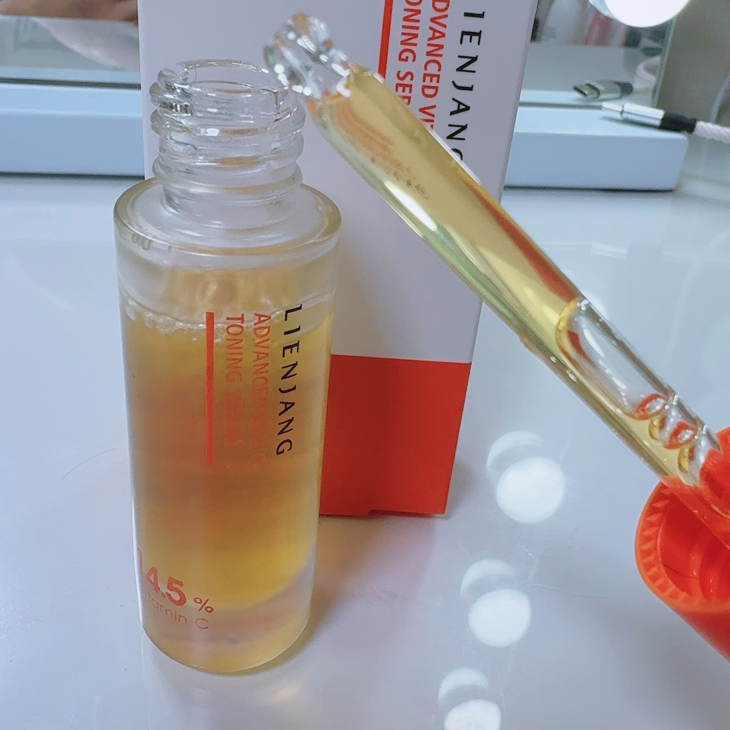 #リエンジャン の「アドバンスド ビタCトーニングセラム14.5」ツナ缶の香りがする!って話題になった美容液!🐟 たしかに蓋開けたらツナ缶だけど、1スポイト分を顔にのばしたら薄まってそんなに気にならなかった✨ 酸化防止対策のキャップも◎ #韓国コスメ #スキンケア #ビタミンC美容