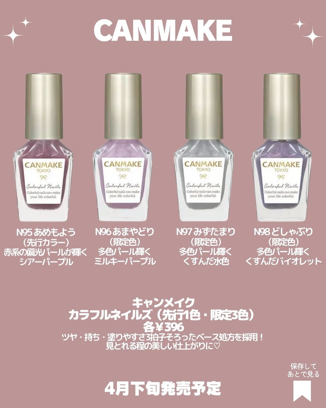 キャンメイク カラフルネイルズ | 396円 |
