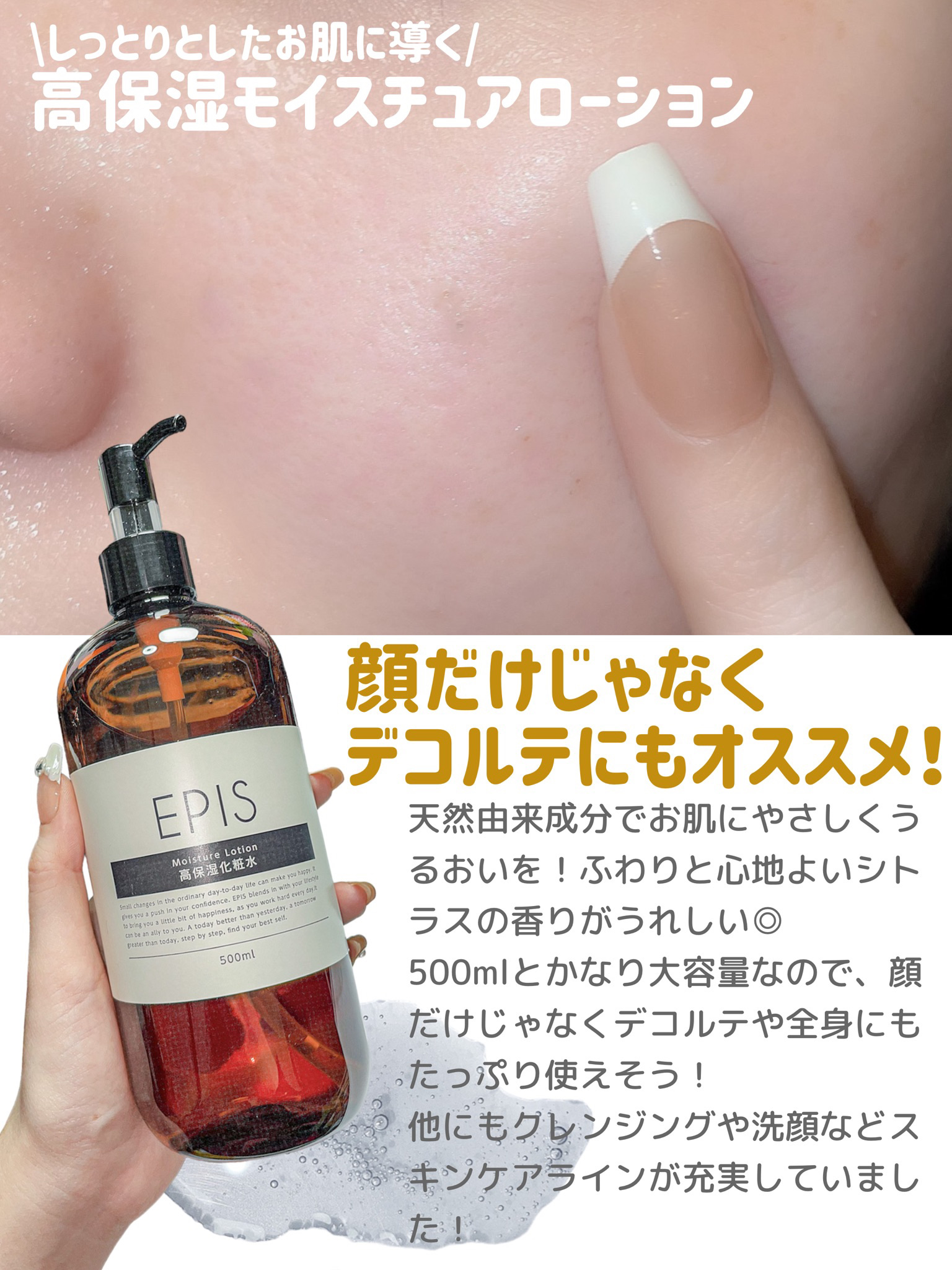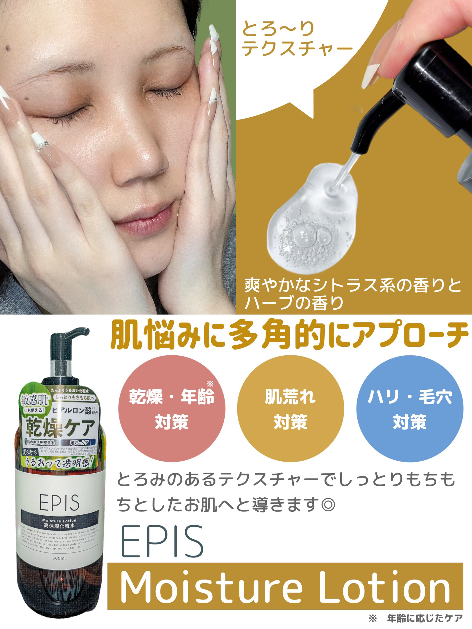 - 天然由来成分でお肌にやさしくうるおいを与えるオーガニック化粧水 EPISモイスチュアローションは、とろシャバ感のあるさっぱりとしたテクスチャーでありながら保湿力もあり、透き通るような美しい素肌へ導く化粧水です。厳選されたオーガニック成分が肌の明るさとツヤ、ハリを感じさせます。 2024年パッケージリニューアル