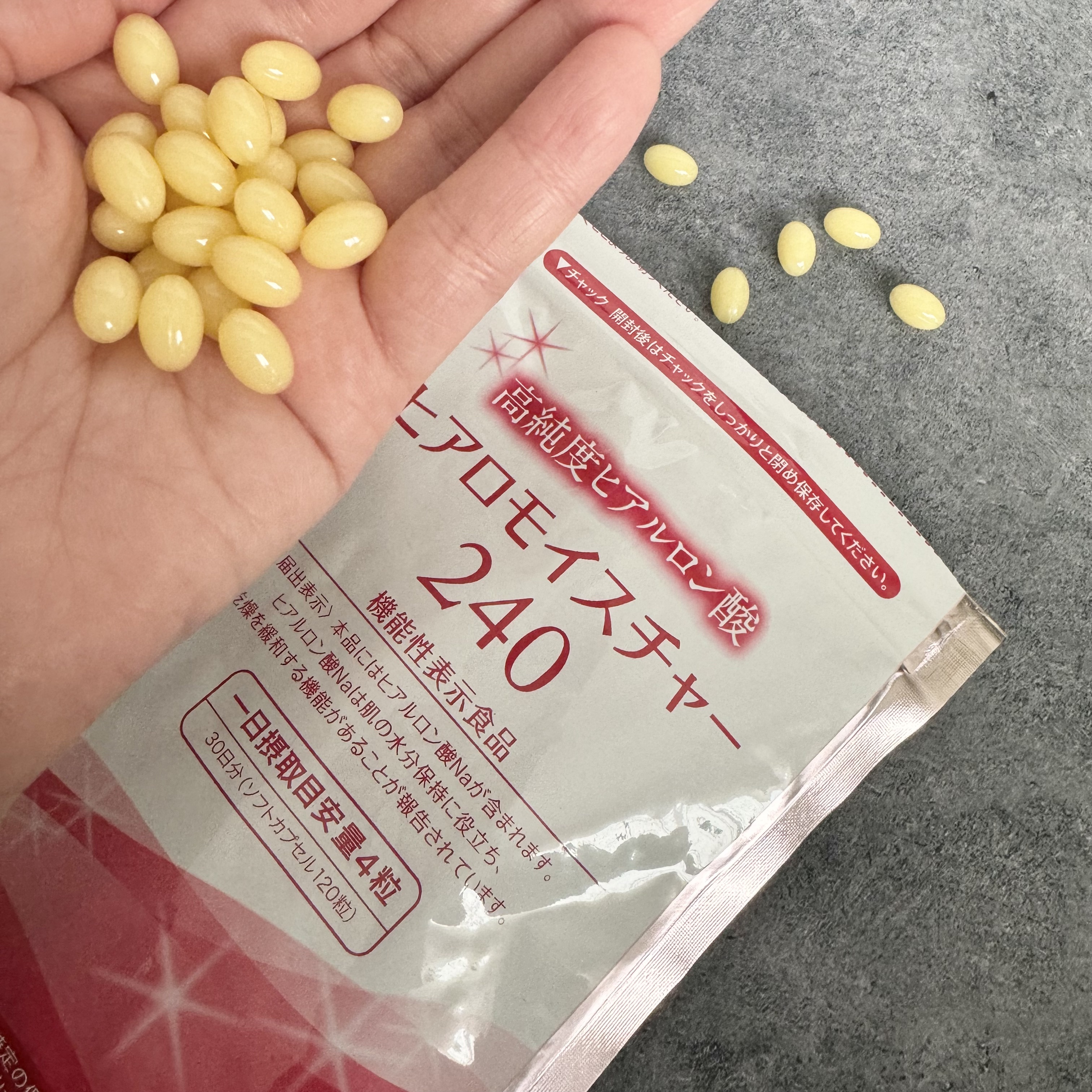 こちらはお肌のサプリメントで日本初の機能性表示食品です✨ 高純度なヒアルロン酸を主成分にして葉酸を組み合わせているのが特徴。 1日4粒目安で、240mgのヒアルロン酸Naを摂取でき、身体の内側から潤いを与えてくれるそう🎵 また、キユーピーオリジナルの「高純度ヒアルロン酸」は純度90%以上で医薬品で利用されるレベルなんだそうですよ! カプセルはつるんとしたソフトカプセルで可愛いクリーム色の粒😌 においもなく、サイズも小さくてとても飲みやすい👍 続けやすさのこだわりを感じます◎ 外側と内側、両方からケアしていきたいですね🍀